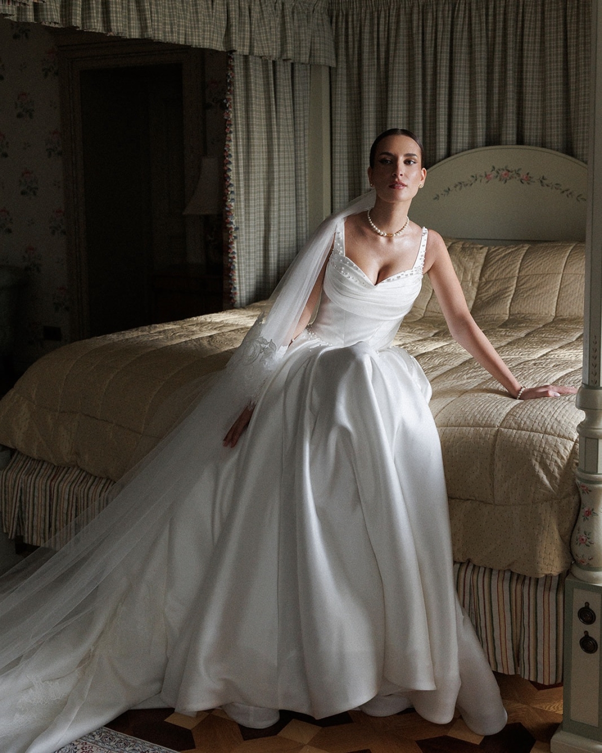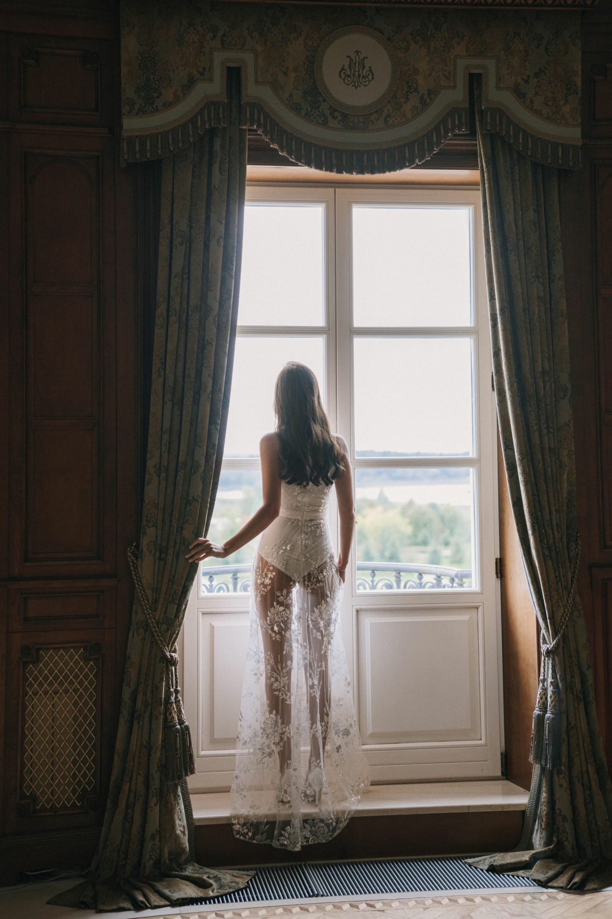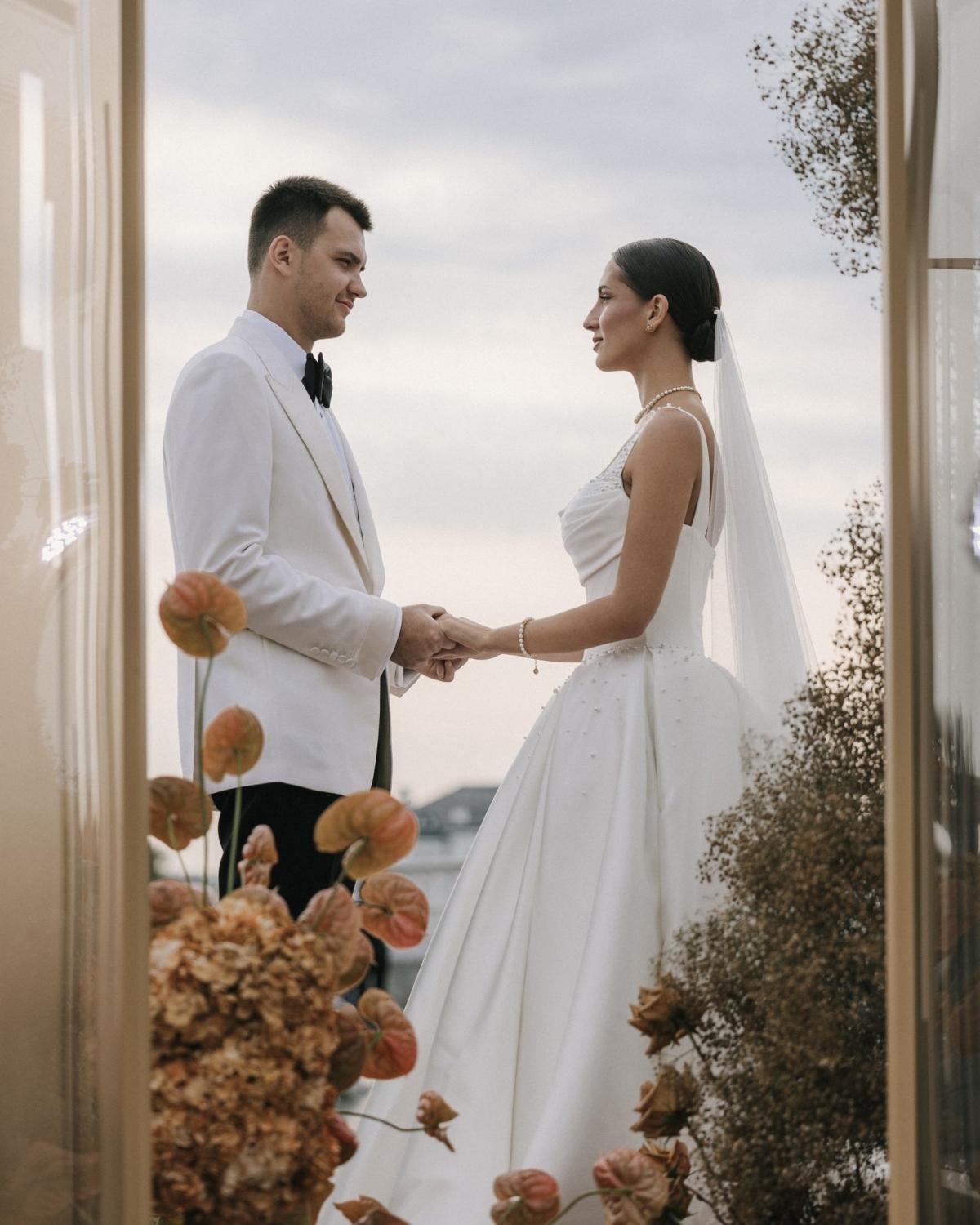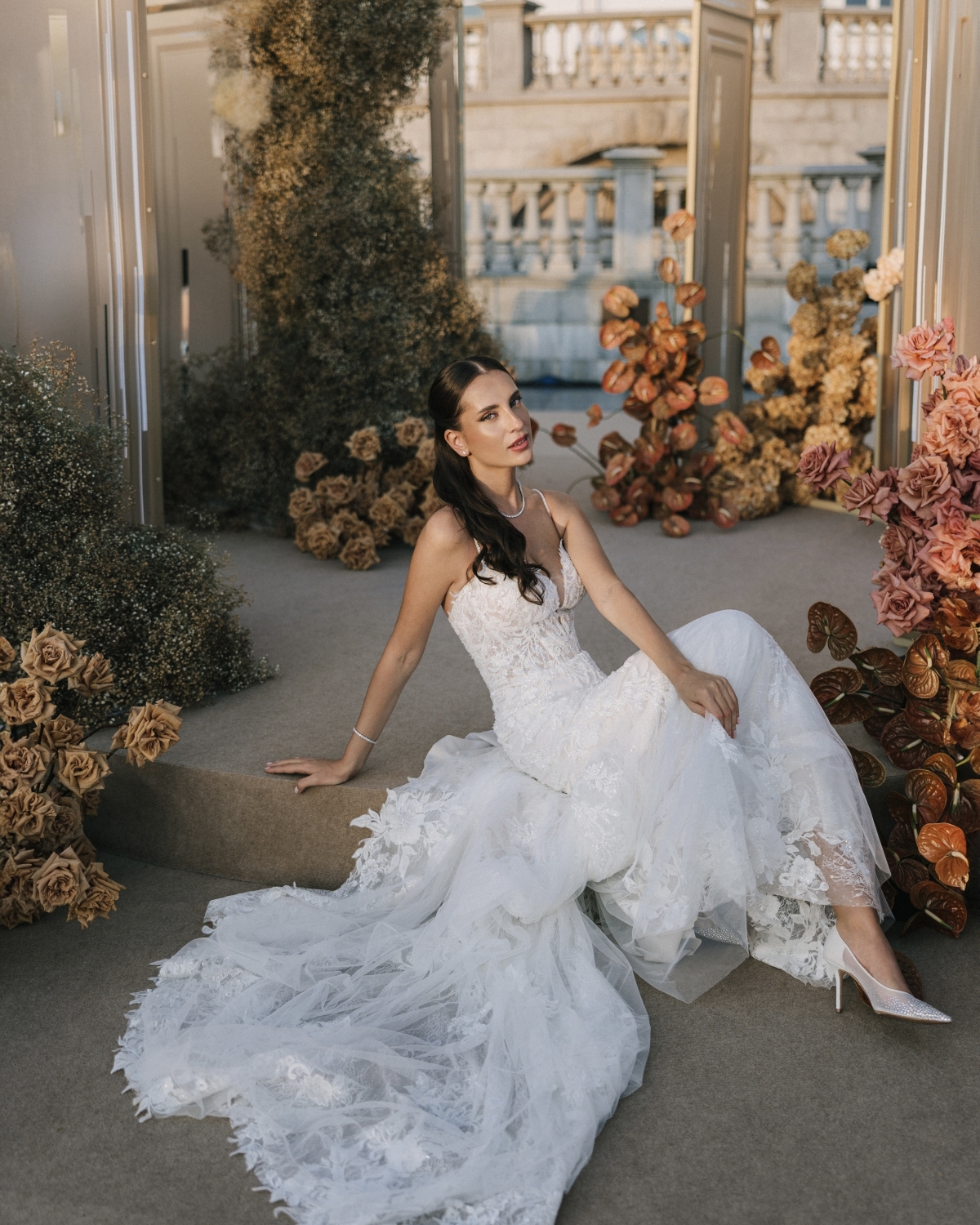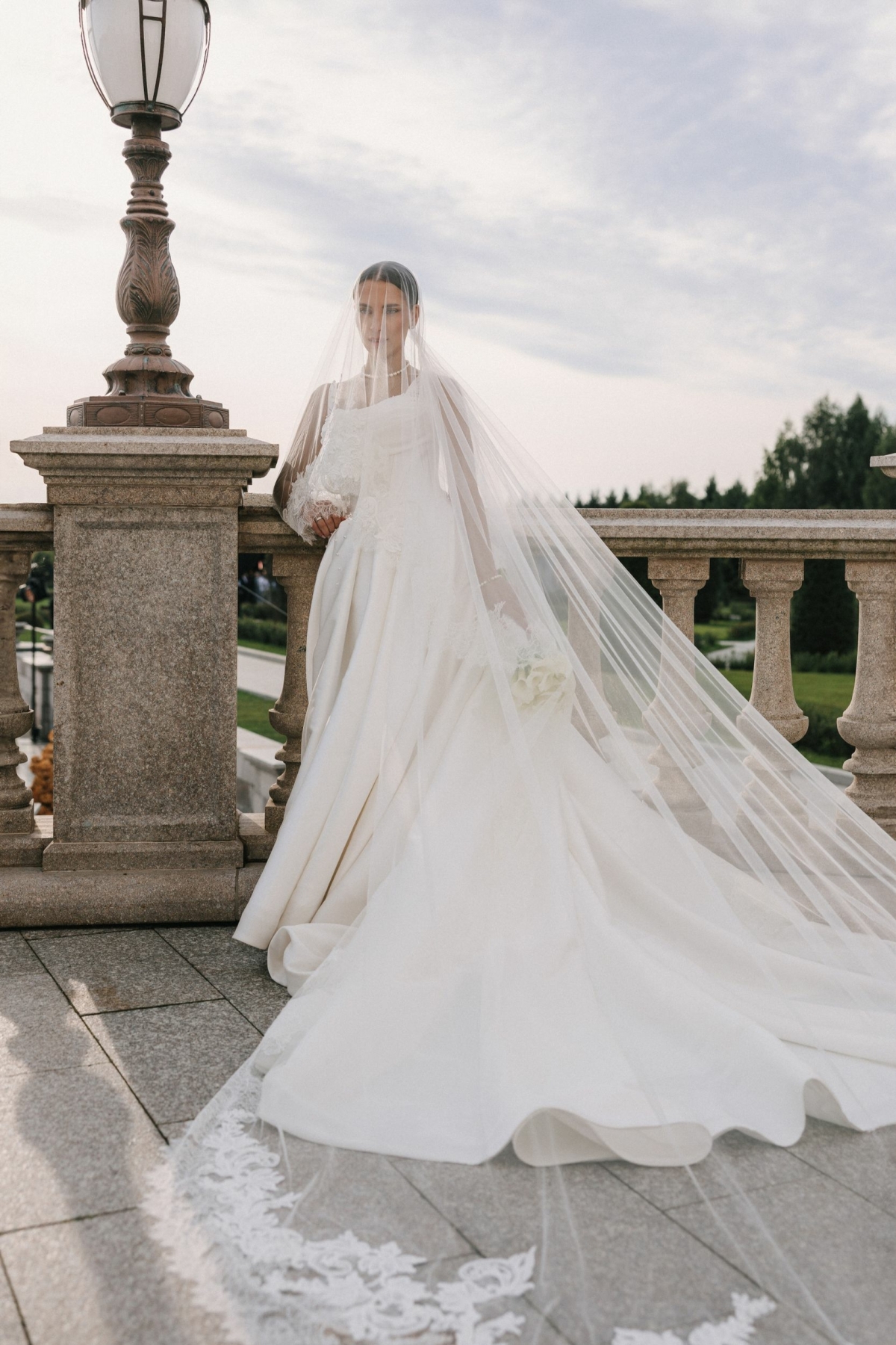 Все образы подбирала мой стилист: вместе мы летали в Милан и искали платья там. Единственное исключение — наряд для церемонии. Его я купила в Москве, в Christi Wedding. Салон тоже нашла мой стилист, потому что именно там было платье, которое полностью совпадало с моим детским представлением. Я описала ей, каким его вижу, — и она нашла точное попадание. В наличии оказался мой размер, я примерила его первым и сразу поняла, что не хочу ничего другого. Судьба.
