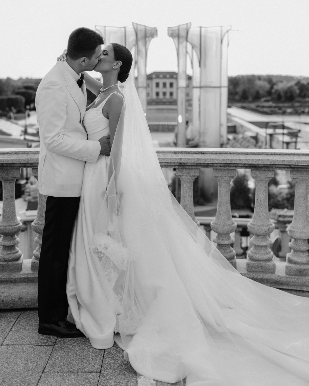 В Милане мы выбрали платье на банкет, наряд для вечеринки и образа для утра невесты. Ну и костюм жениху — лучше белого смокинга Tom Ford еще ничего не придумали.