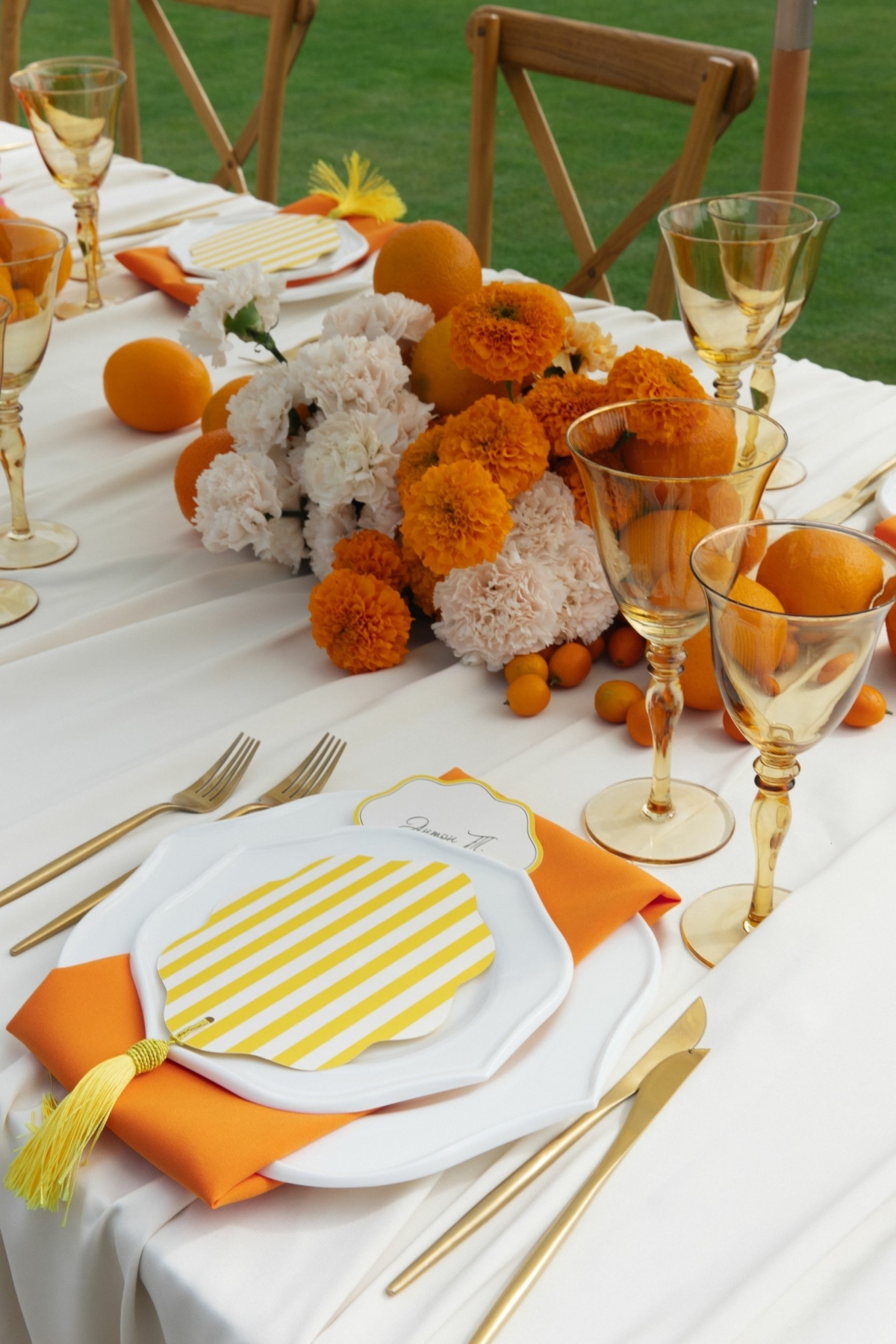 У нас было 40 гостей. На фоне яркого декора с апельсинами и зеленью дресс-код напрашивался сам собой. Мы выбрали цвета, которые есть у всех и при этом смотрятся гармонично: черный, серый, бежевый и белый. И да, я не верю в приметы.