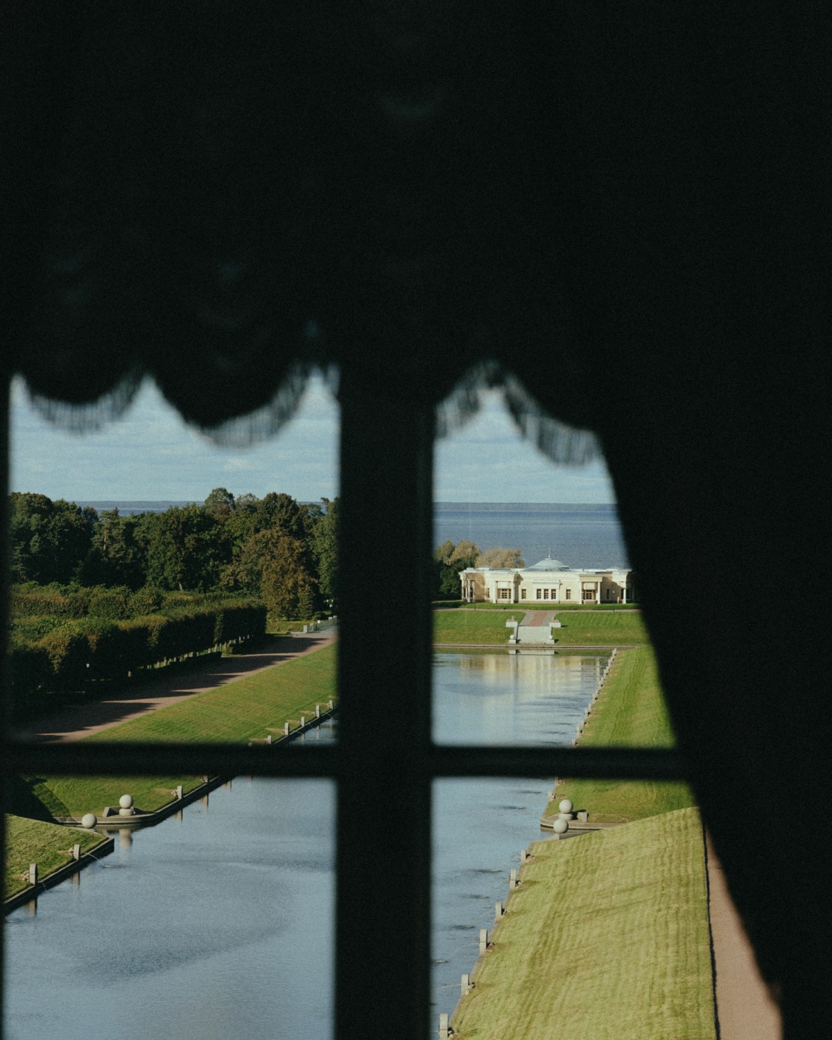 Свадьба проходила в Константиновском дворце в Петергофе. Изначально мы искали элегантную дворцовую площадку на большое количество гостей, и при этом не самую очевидную и популярную. Вариантов было немного, и Константиновский идеально совпал с нашим ви́дением.