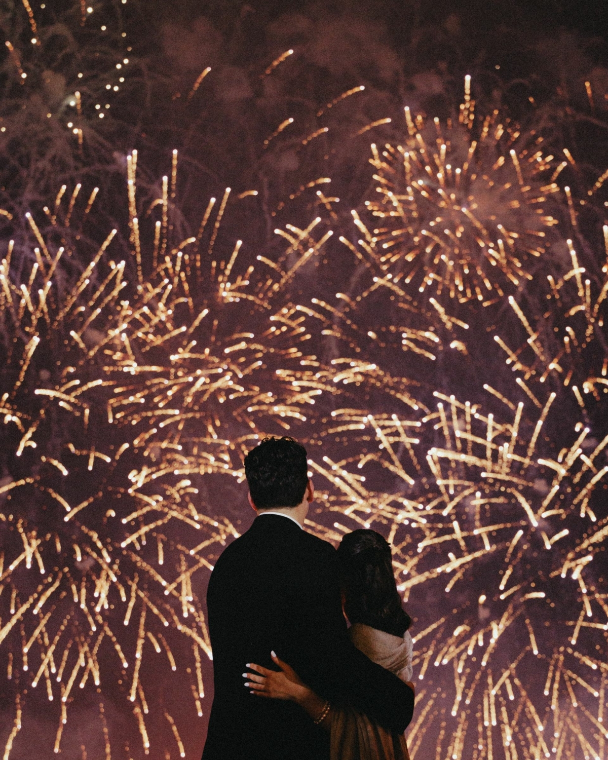 Отдельная история — салют. Это была мечта Арсения, и он сам вместе с пиротехниками писал сценарий, созванивался с ними почти каждый вечер, продумывая каждую секунду. В итоге получился действительно роскошный салют под ту же песню, что играла в момент предложения в Риме.