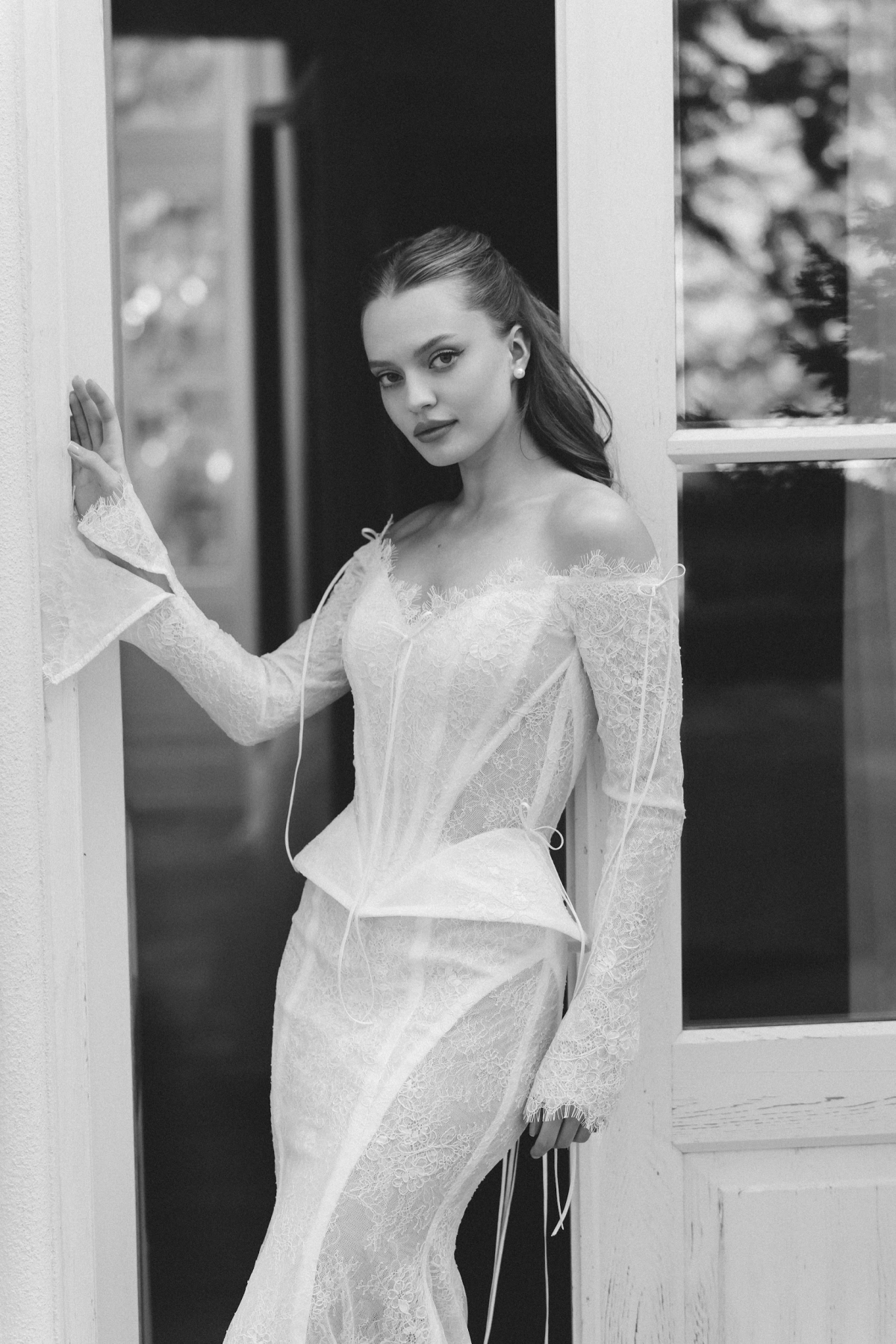 Для утра я выбрала кружевное бра и атласную юбку, сверху — боа из перьев страуса. На съемку — костюм в горох, идеально подходящий к атмосфере локации. А свадебное платье шила на заказ. Обошла множество салонов, но не нашла «того самого», поэтому обратилась в ателье. С дизайнером дорабатывали идею с каждой примеркой — и в итоге получилось платье, в котором я чувствовала себя собой.