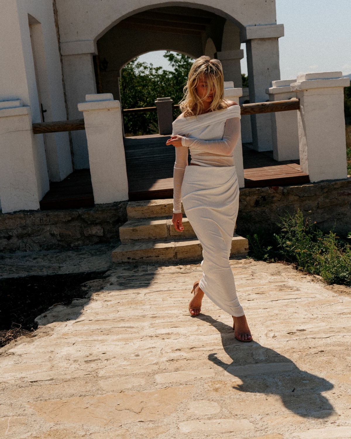 — платье по фигуре, с голыми плечами. Хотелось чего-то простого, женственного, чтобы красиво начать день.