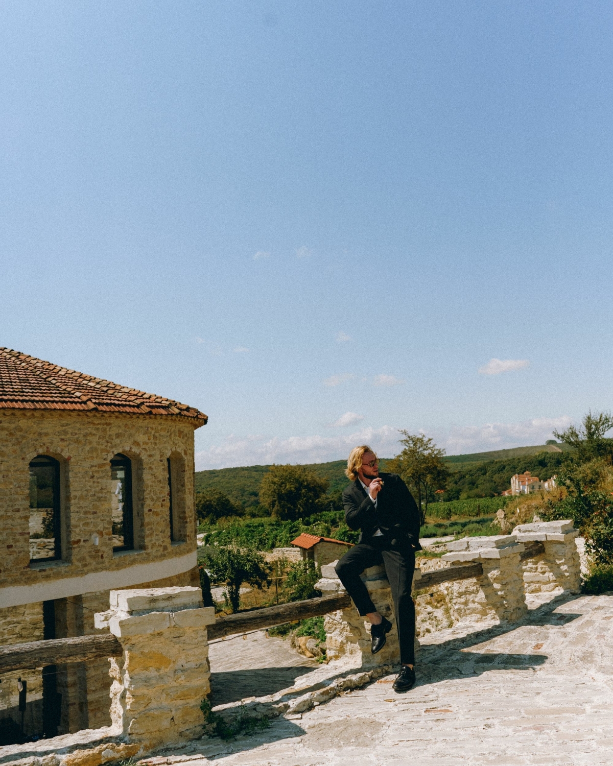 Свадьба была в Анапе, в виноградниках «Шато Андре». Изначально Денис мечтал о свадьбе в Италии. Ему близка вся эта эстетика: свет, воздух, лозы, природа, архитектура. Когда мы стали думать, как создать похожее настроение, но оставаясь в России, «Шато Андре» всплыло почти сразу. Это место — маленькая Италия или Прованс: лаванда, виноградники, красивейшие домики, фонтан, архитектура.