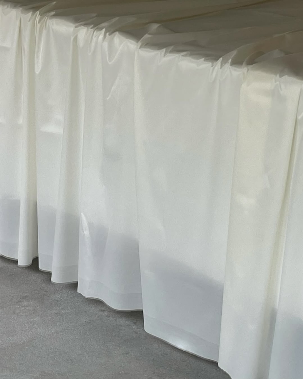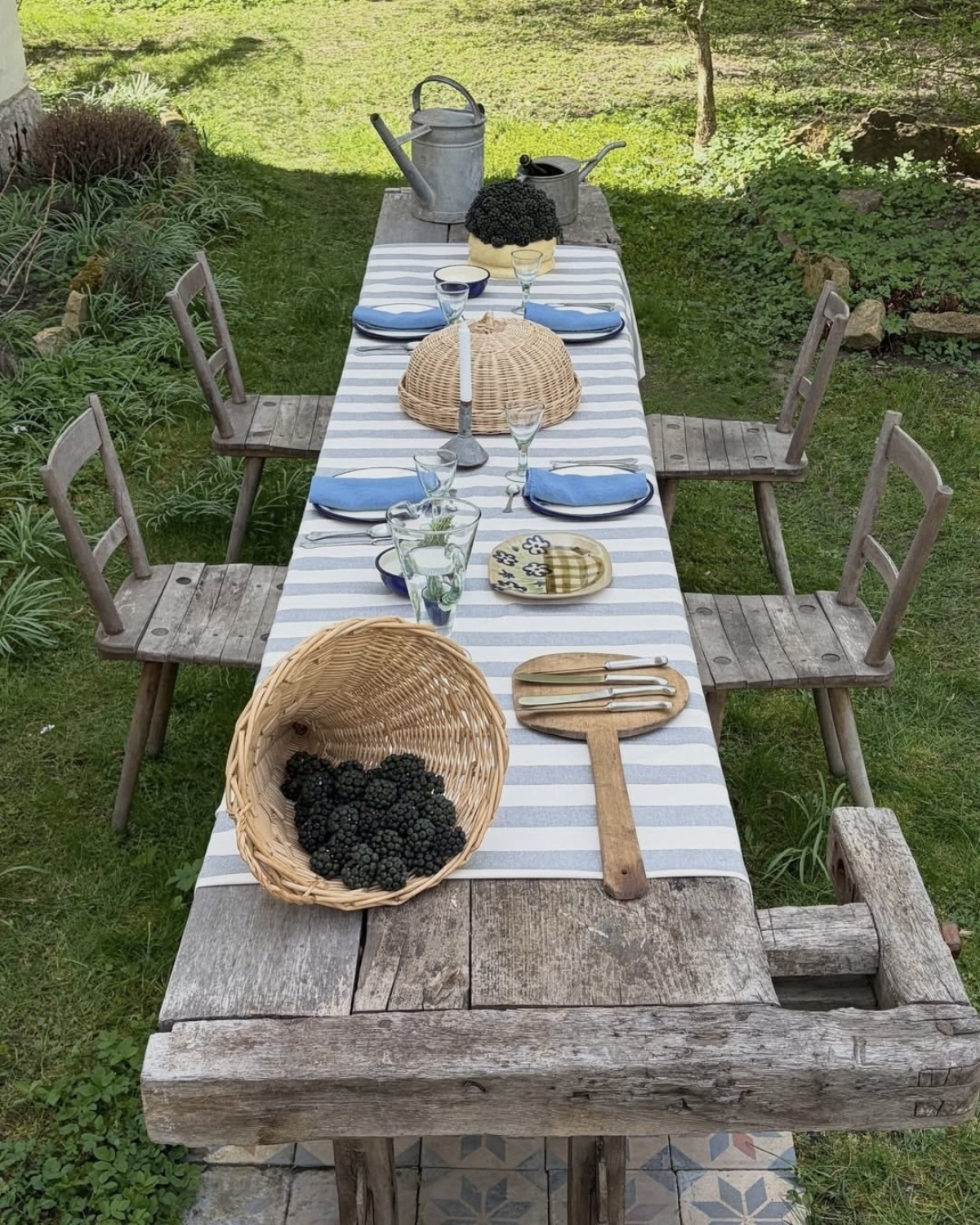 В 2026 году бумажные салфетки и синтетические ткани заменили на натуральный лен и хлопок. Если скатерти, то обязательно в пол, а когда хочется показать текстурный стол, используют персональные плейсматы — ажурные, с оборками или принтом. К слову, текстиль можно и миксовать, но делать это лучше аккуратно. Например, однотонная скатерть и яркие плейсматы — и наоборот.