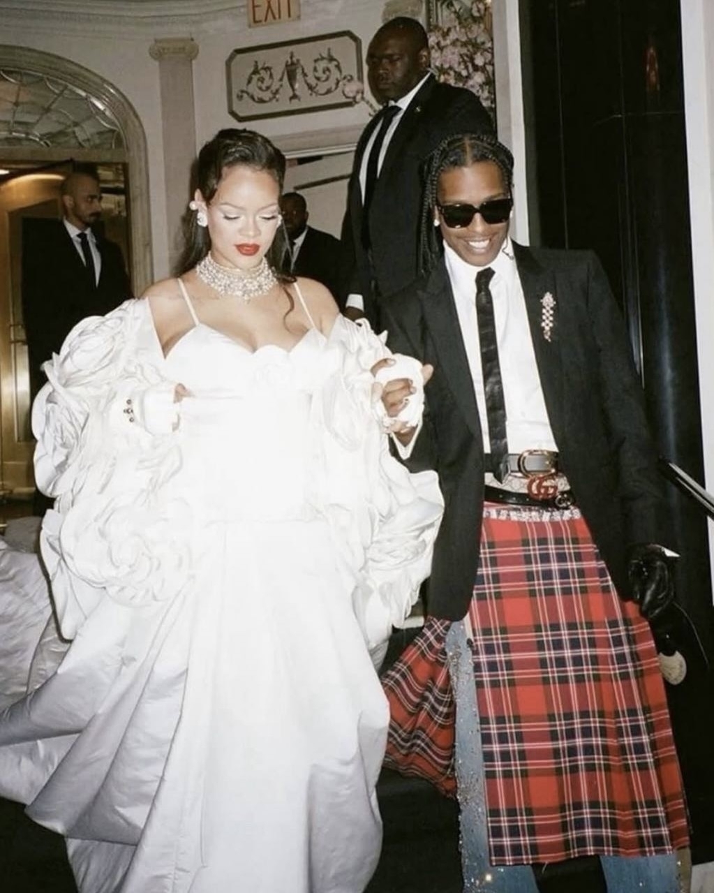 Близкие к паре источники в один голос утверждали о том, что это не просто интрижка. В этом, в общем-то, ловко убеждал поклонников и сам Раким: в интервью GQ рэпер впервые публично подтвердил отношения с Ри, назвав ее своей леди и любовью всей жизни. «Этот роман начал зарождаться еще тогда, когда они были друзьями, — рассказывали инсайдеры. — Они уже знали и уважали друг друга, и с тех пор их чувства только крепли». Первый совместный выход пары случился на Met Gala в 2021 году, когда Рианна надела черное платье Balenciaga, а Раким — разноцветную одеяло-накидку. Их роман стал еще серьезнее уже в январе: певица объявила о первой беременности.