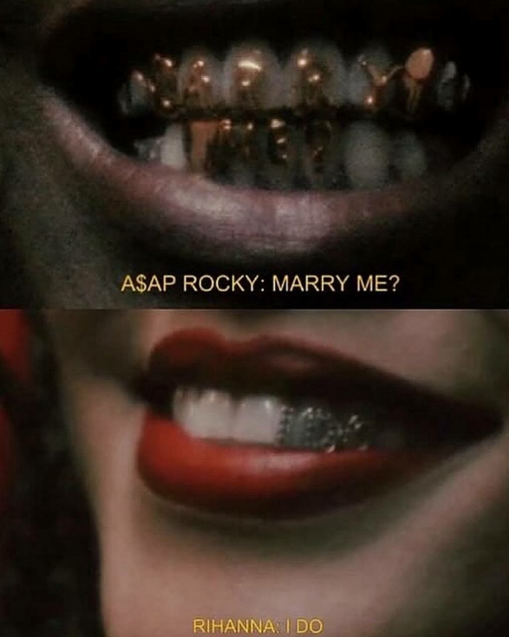 Официальных новостей о помолвке или свадьбе со стороны пары не было. Но ходили слухи о том, что Асап сделал предложение Рианне еще до рождения первенца. По крайней мере, об этом он намекнул в своем клипе D.M.B. 2022 года. На 3-й минуте рэпер показал грилзы с надписью «Выйдешь за меня?», а певица ответила ему согласием (тоже в украшении на зубах). Расписались ли они, все еще загадка, но рэпер не раз называл Ри женой. Свадьба (была она или только будет) прошла бы на Барбадосе — родине Рианны, откуда родом и отец Ракима.
