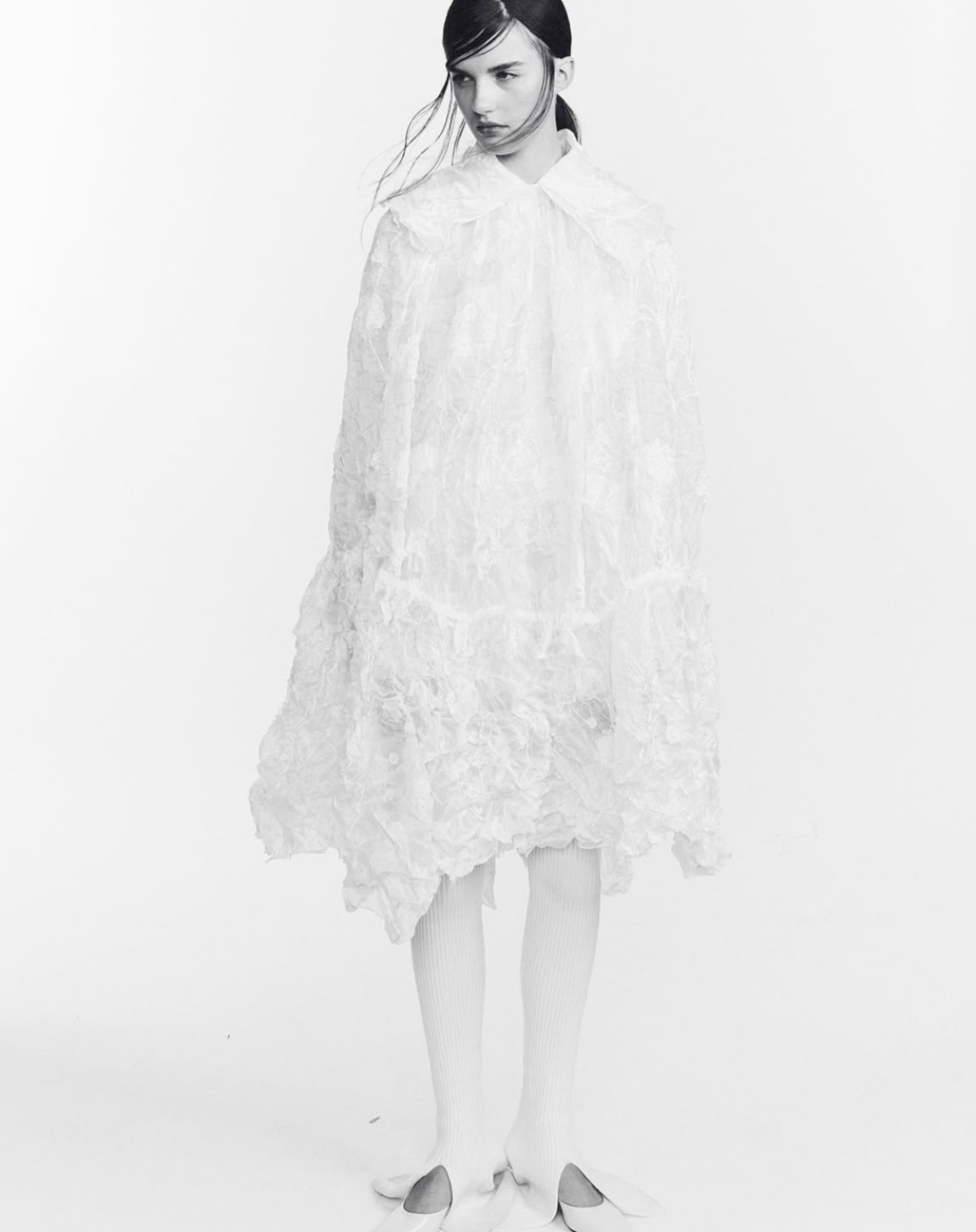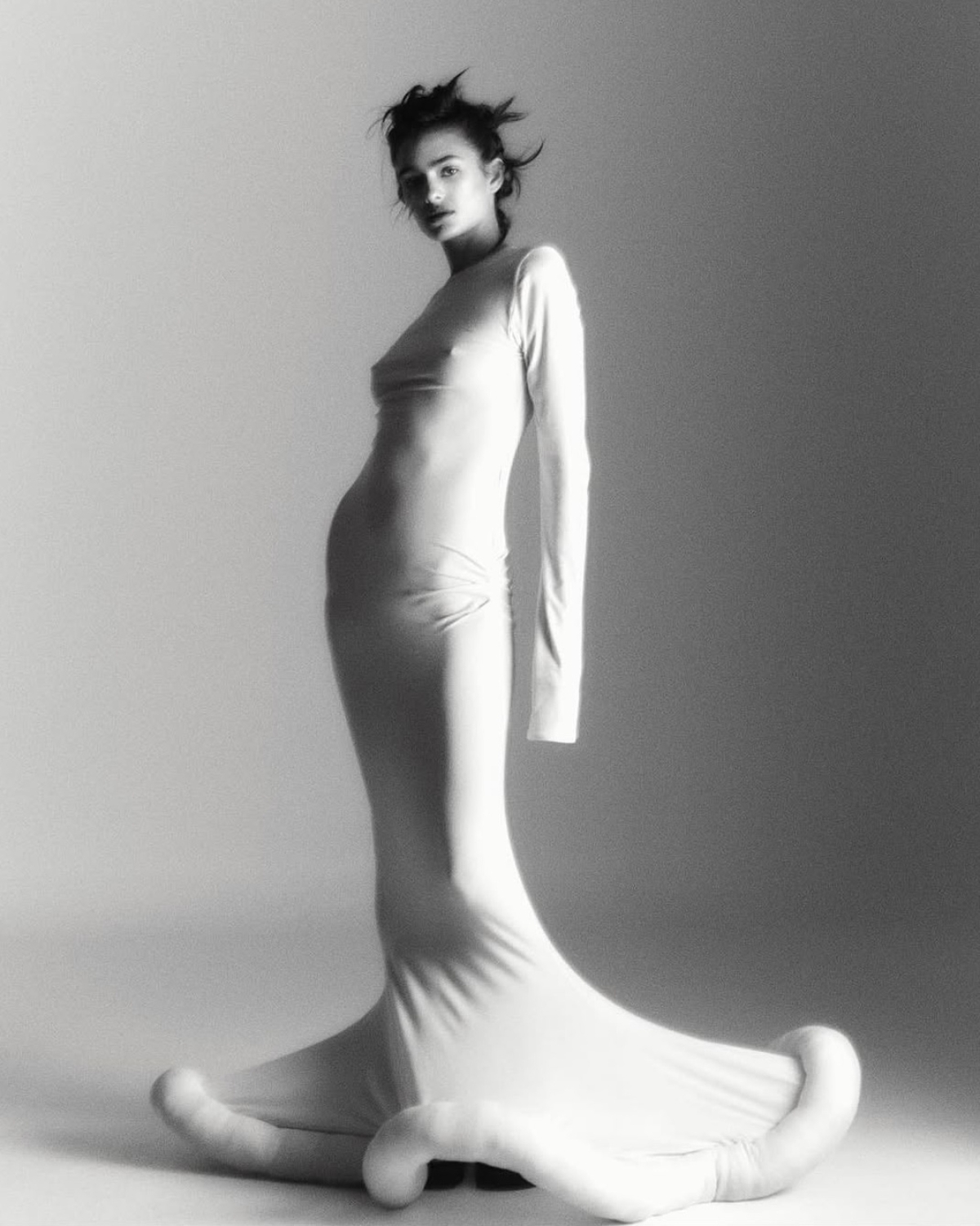 Стиля могут добавить и колготки, если использовать их не только как часть нижнего белья, но и как акцент. Поэтому вместо полупрозрачных нюдовых вариантов предлагаем выбирать кружевные, яркие цветные или с абстрактным узором. В этом сезоне особенно актуальны рисунки в горошек и ромбик в продолжение эстетики Clown Core.