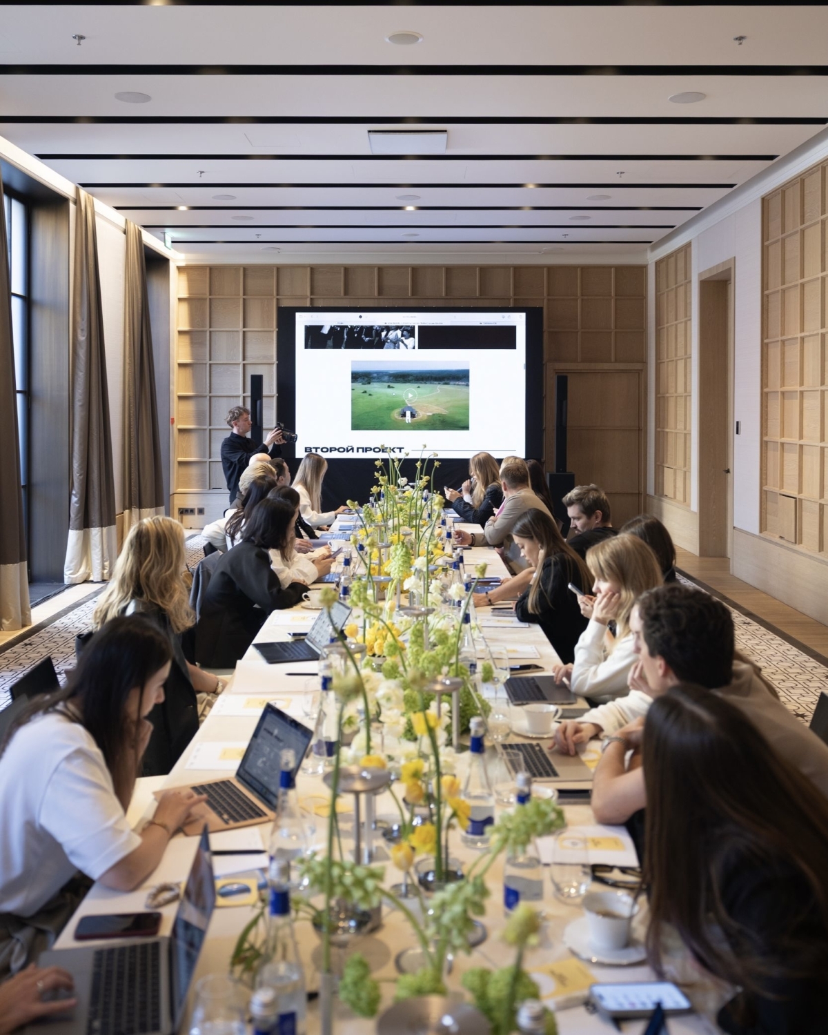 Встреча жюри состоялась в отеле Stella di Mosca на Большой Никитской, 9. Серьезные обсуждения дополнили легкой весенней атмосферой, выстроенной вокруг желтого цвета — от приглушенных до ярких оттенков. Ивент-менеджер Юлия Набока в коллаборации со студией декора «Не просто цветы» предложили лаконичный сеттинг: одиночные растения в контрастных металлических креманках и серебристые лампы по центру стола, дополненные зеленью; карточки рассадки в поддерживающем флористику оттенке для каждого члена жюри и ледовые инсталляции на баре от Le Ice Premium. За технический продакшен мероприятия отвечали Dáudio, а репортаж с места событий доверили фотографу Сергею Верещагину и видеографу Ивану Ежкову.