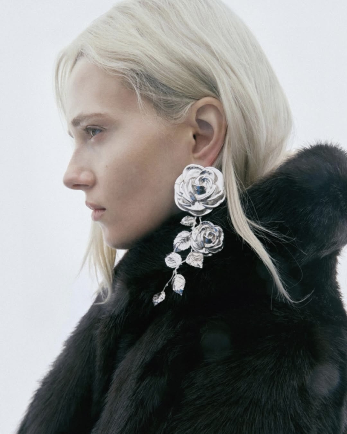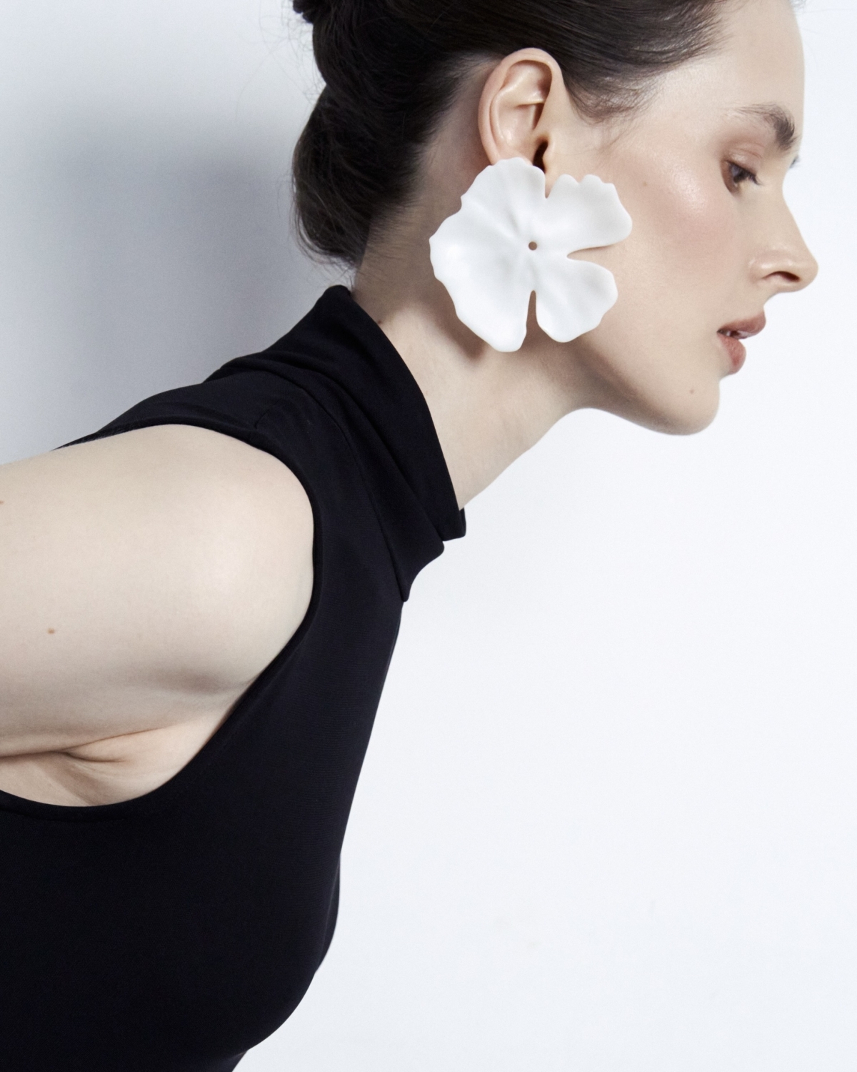 Моносерьга Maru Jewelry, платье Nume x Kalmanovich