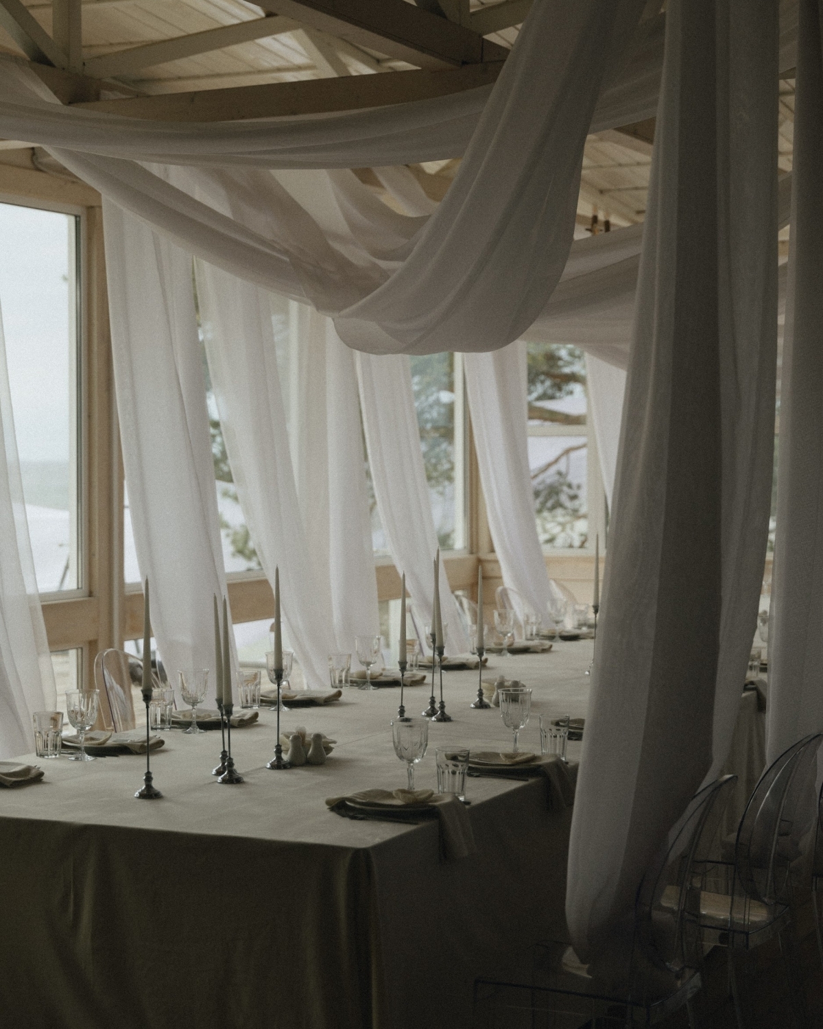 Если хочется уехать из города — тоже отлично. Вокруг Петербурга достаточно живописных мест: дворцы, усадьбы, замки, загородные комплексы, которые можно арендовать на несколько дней, чтобы провести полноценные свадебные выходные. А можно, наоборот, остаться в городе и провести день в укромных локациях: на террасах, в небольших театрах, люксах отелей, двориках ресторанов, старинных библиотеках, исторических залах, даже на крышах или в конюшнях. Петербург полон неожиданно уютных и камерных пространств.