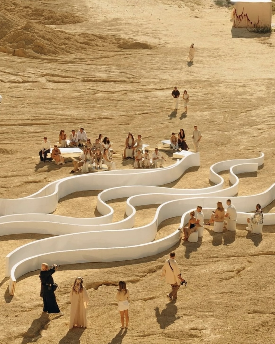 Так, на безлюдном карьере декоратор Саша Ленкей для собственной свадьбы создала пространство, вдохновленное философией Burning Man — свободой, единением и искусством, рождающимся в пустоте. Здесь нет крыши, нет стен — только природный ландшафт, игра форм и масштабов, и футуристичные белоснежные декорации, контрастирующие с песком и небом. Это не просто свадьба, а фестиваль, где каждый гость — часть большой семьи и соавтор происходящего.