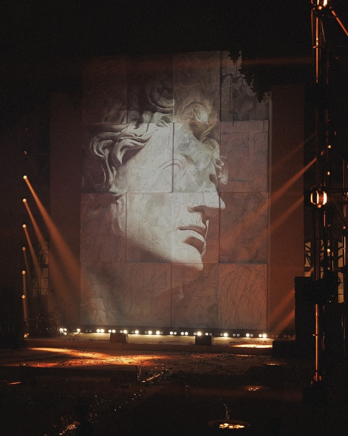 После захода солнца пространство преобразилось: появилась глубина и цвет, а масштабная работа со светом и проекциями создала ощущение кадра, будто сгенерированного искусственным интеллектом — живого, объемного и почти нереального.