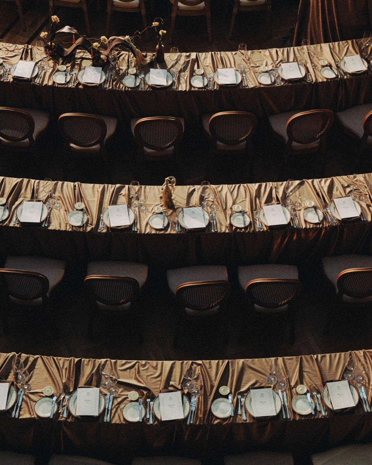 «Нам хотелось сохранить величие "Метрополя", его стилистику — и при этом перевести все это в современную, эстетичную форму. Поэтому мы работали с комплементарными цветами, гобеленами и через декор усиливали ощущение искусства как главной темы вечера».