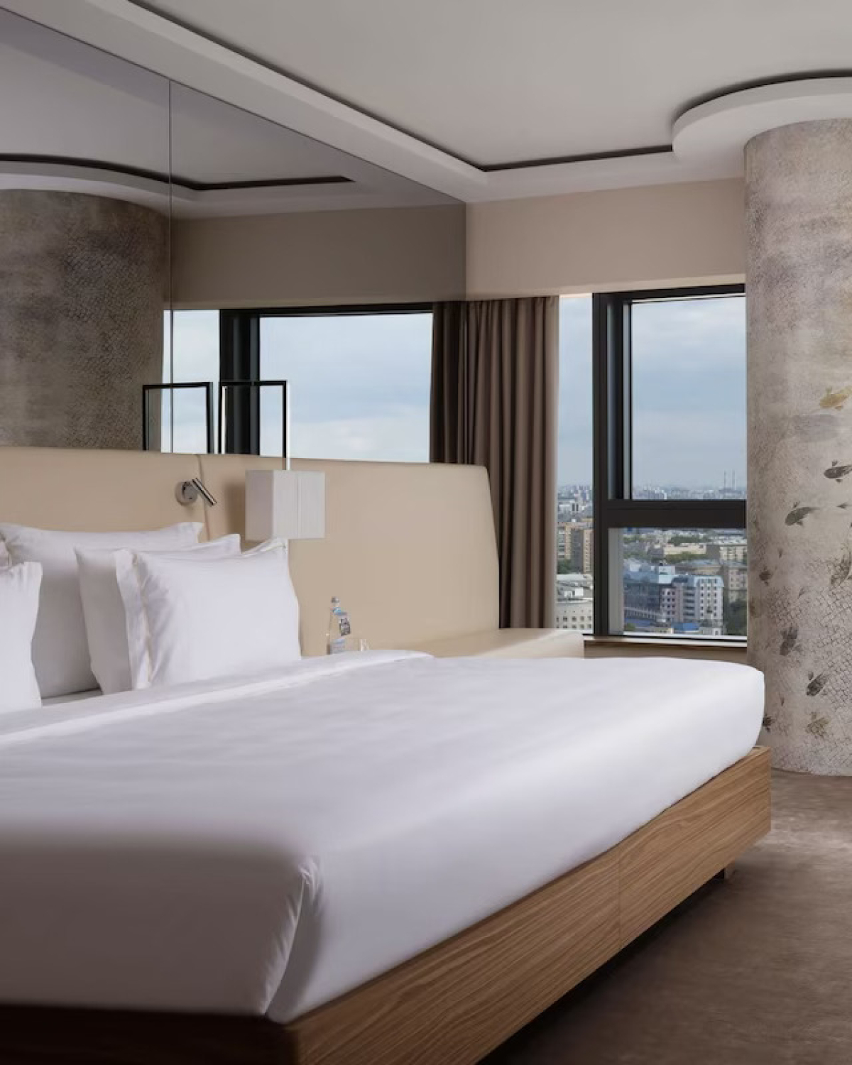 В номерном фонде Radisson Collection Hotel Moscow 501 элегантная комната, включая люксы и апартаменты с обслуживанием, из которых открывается вид на Москву-реку. К услугам гостей отеля — бесплатное посещение велнес-клуба «Роял». Для камерных мероприятий здесь предусмотрен 170-метровый «Коллекшен люкс», оформленный в современном стиле в черно-белой гамме. В номере с прихожей имеются спальня, гостиная, бар, ванная комната, гардеробная и звуковая панель.
