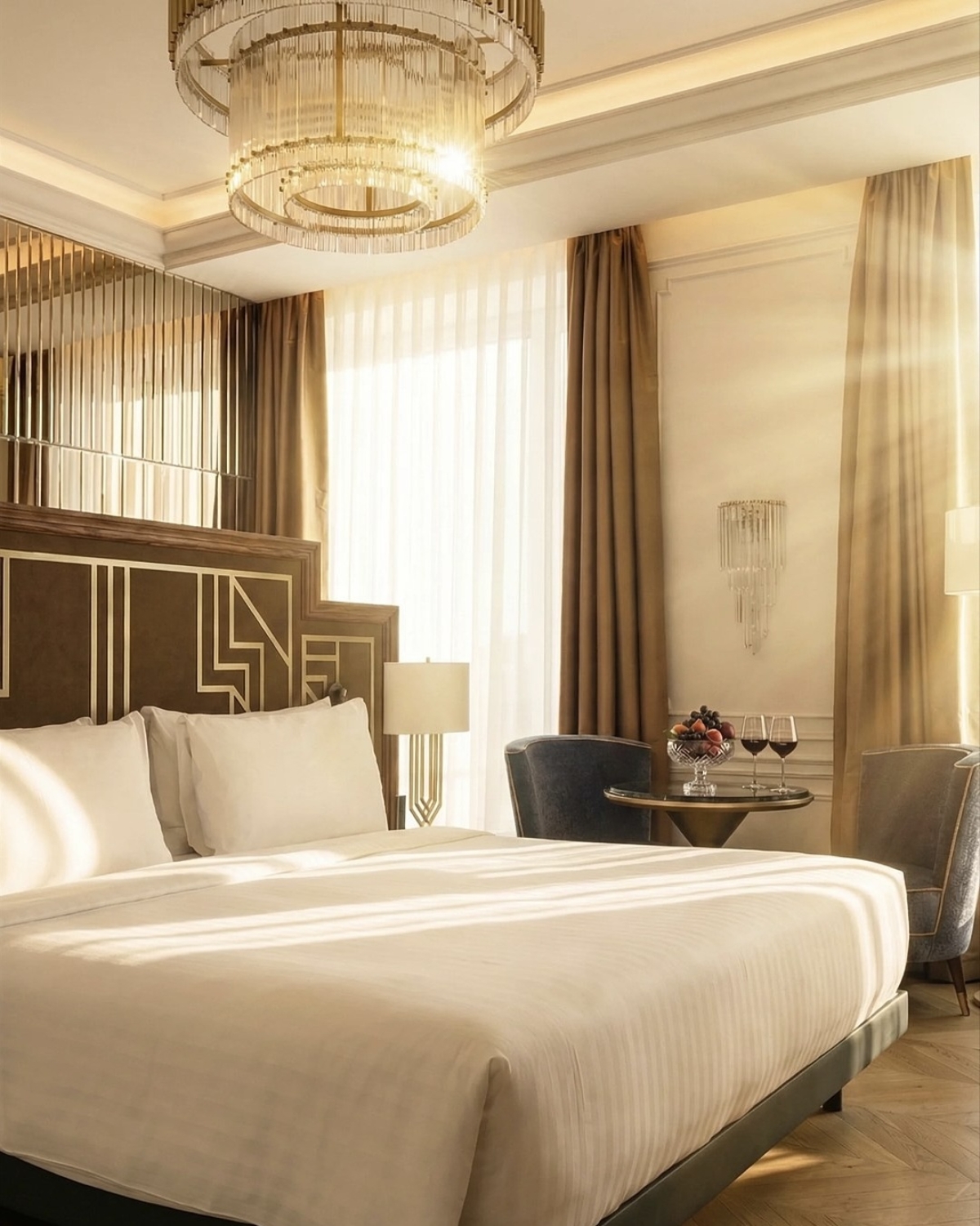 Да, банкет в номере возможен через рум-сервис или банкетную службу отеля (в зависимости от количества гостей). В люксах для 6–12 гостей накрывают полноценный стол с подачей, официантом и иногда услугами сомелье. Сторонний кейтеринг обычно запрещен.