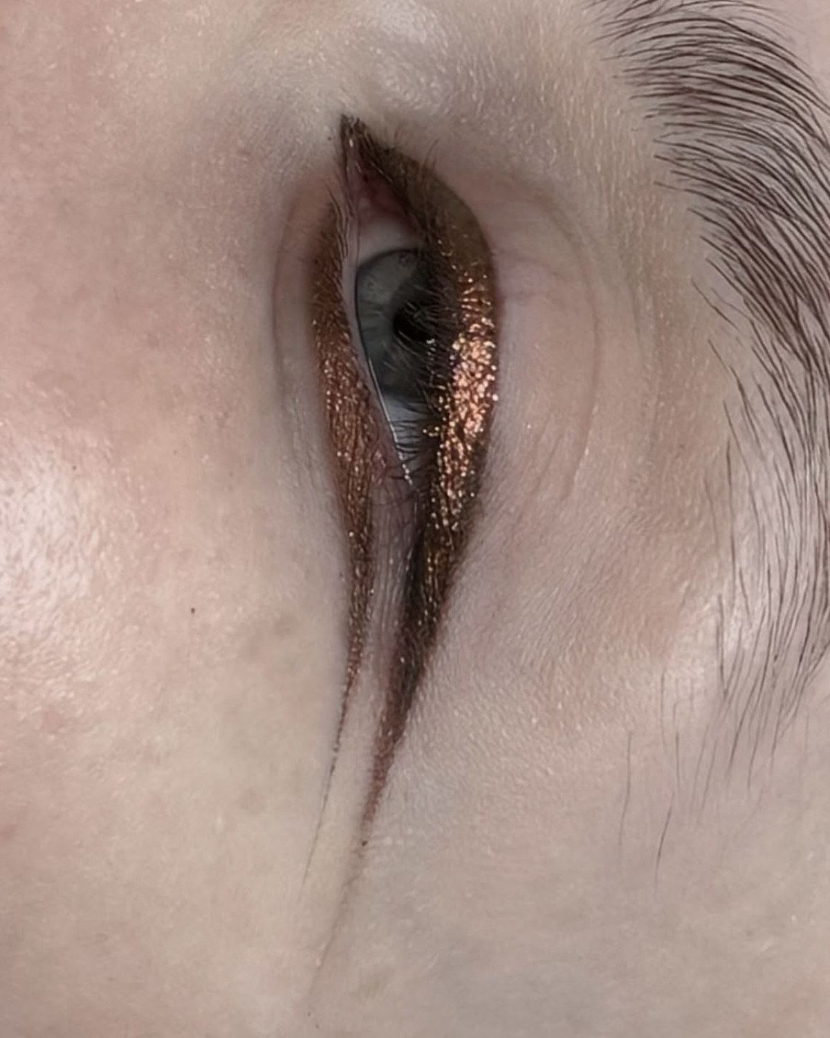 Прокрашивание межресничного пространства, мягкая тушевка и нанесение теней.