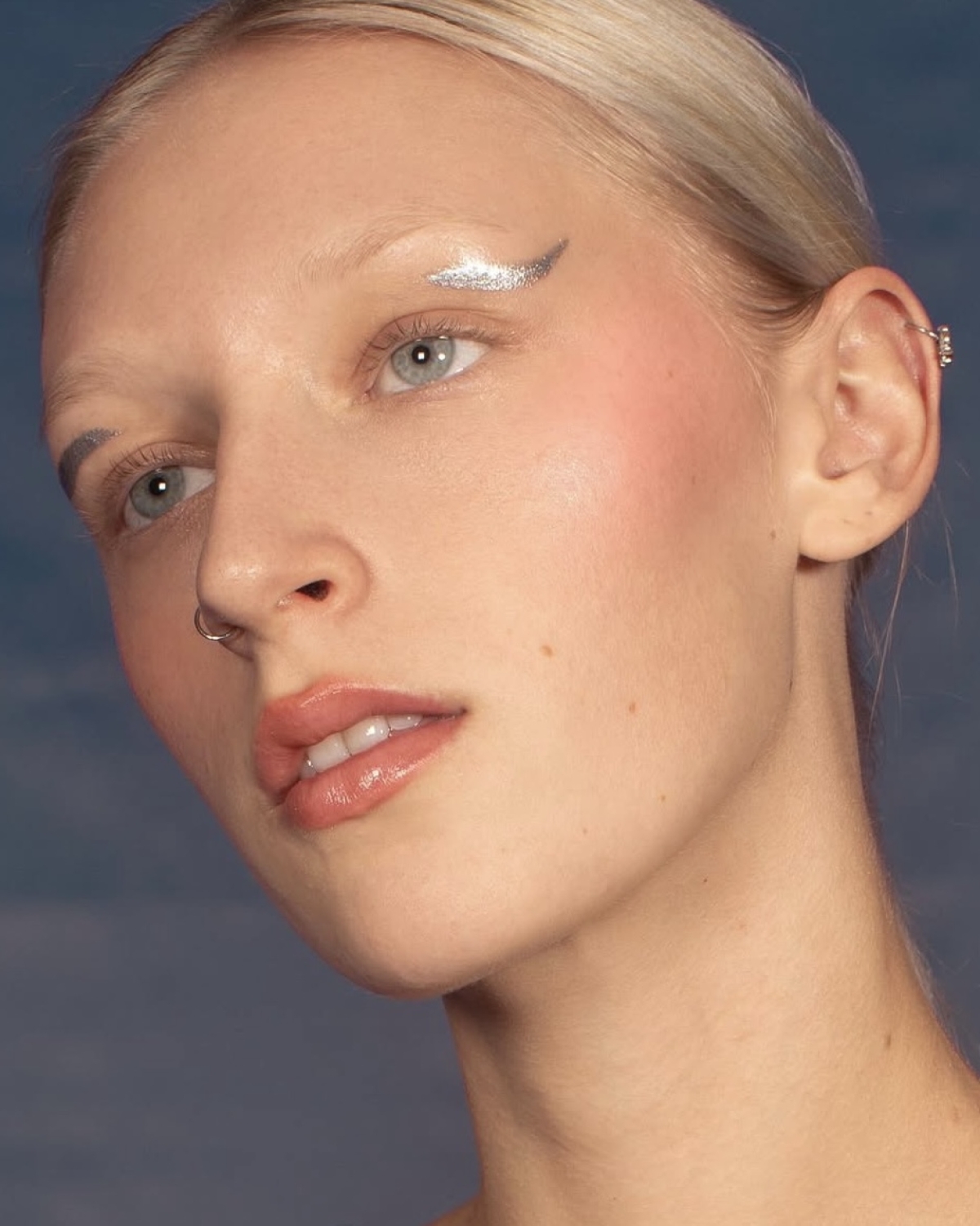 «Холодное сияние» в новогоднем макияже — актуальная метафора на серебристый снег, лед и металл. Такой макияж идеально подходит для вечеринок. И все потому, что наверняка не останется незамеченным в темноте. Этот макияж подойдет для новичков, которые только начинают знакомиться с популярными бьюти-техниками. К слову, наносить тени с металлическим блеском или шиммером необязательно ровно. Хаотичное покрытие сделает образ более брутальным и андеграундным. Достаточно обильно набрать продукт на подушечки пальцев и провести вдоль верхнего века.