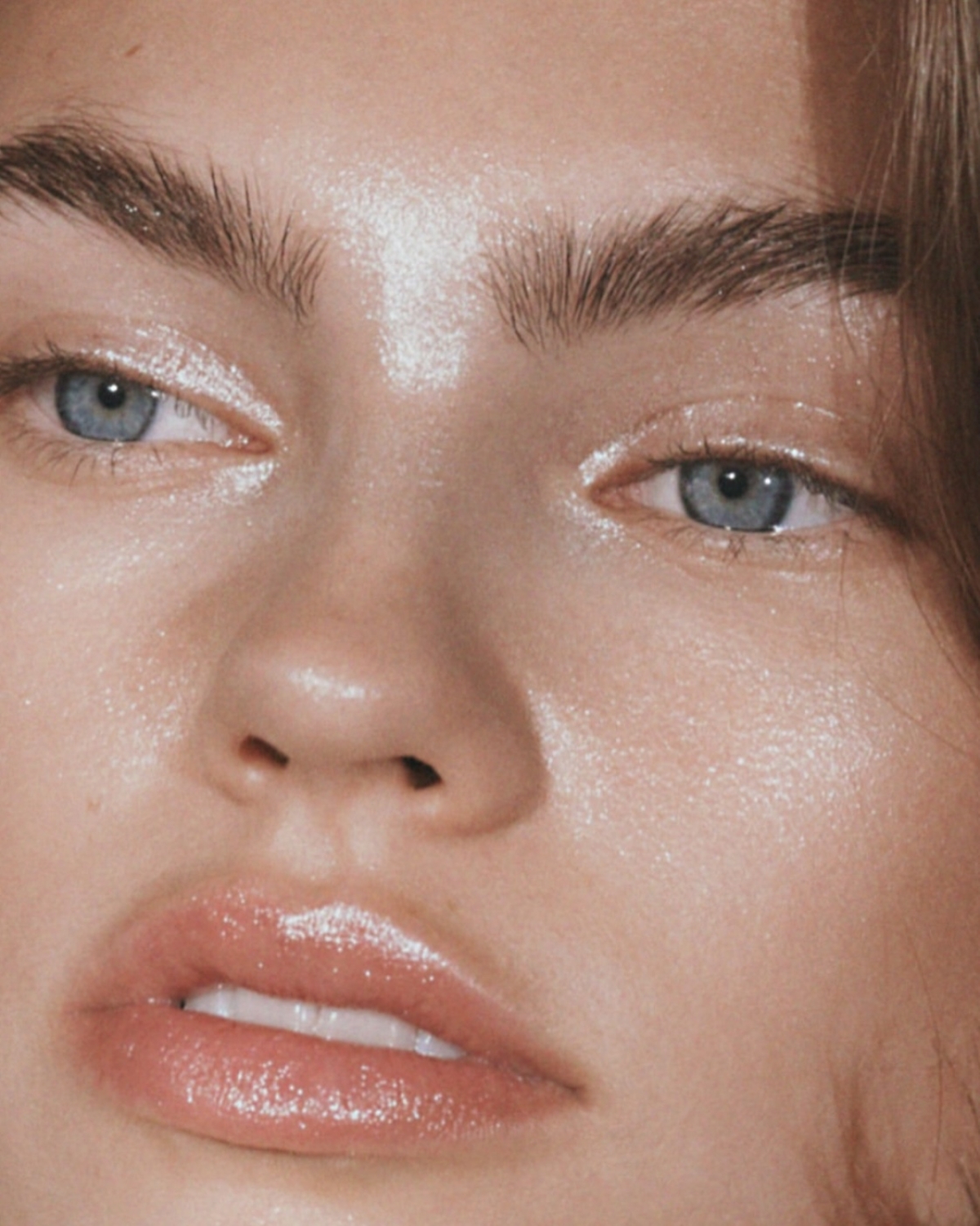 Сияющая кожа. Макияж — это не всегда про яркость, выкрученную на максимум. Иногда для вау-эффекта достаточно увлажненной сияющей кожи. Поможет в этом качественный уход, правильно подобранный тон, легкий контуринг и деликатное свечение, созданное с помощью хайлайтера. Глаза можно слегка выделить тенями и коричневой тушью, а на губы нанести полупрозрачное масло.