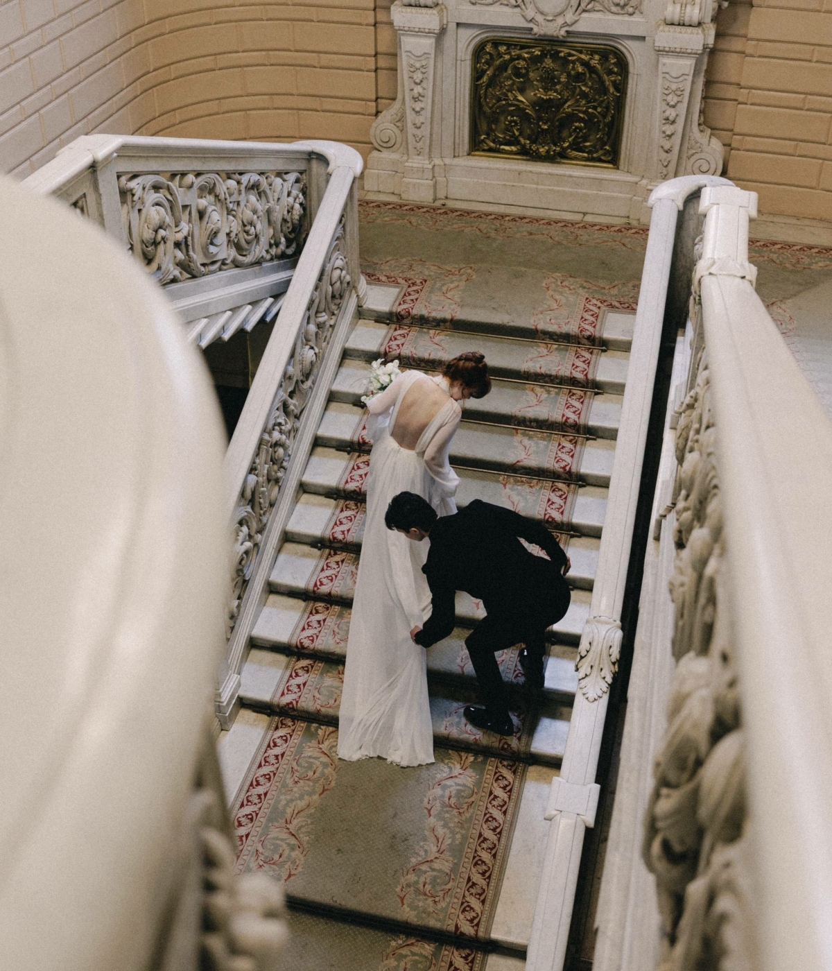 Невеста сменила два образа: на роспись Мария выбрала нежное макси от Murashka в пол, на основную часть дня (прошла в особняке XIX века «Третье место») — кружевное платье из салона «Мэри Трюфель» с длинными шлейфом.