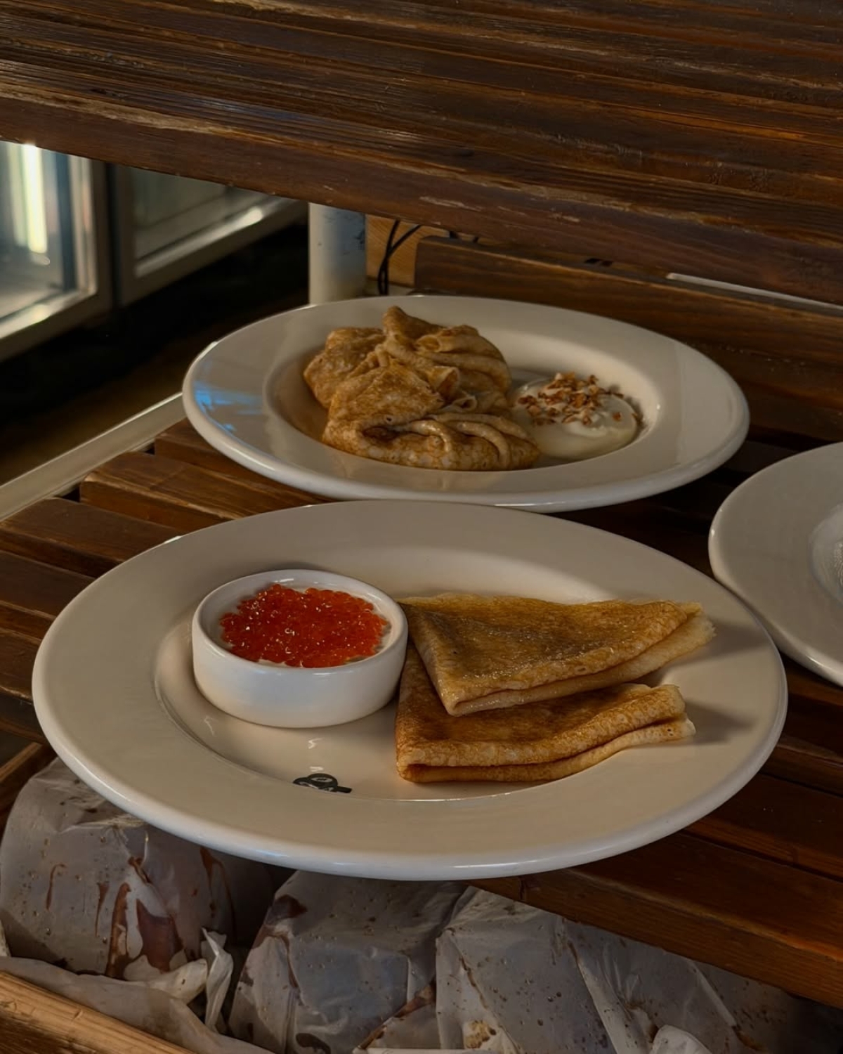 Тех, кто любит праздновать с размахом, ждут в банных комплексах Siberia. Сетом «Сибирская Масленица» стоит дополнить парение и по-настоящему окунуться в атмосферу русского застолья. Позиция включает 30 тонких блинов и 30 пышных оладий с разнообразными топпингами — от варенья и сметаны до трех видов икры, нарезки из ростбифа и слабосоленой форели. Сет доступен до 1 марта в Москве и Санкт-Петербурге по предварительному заказу.