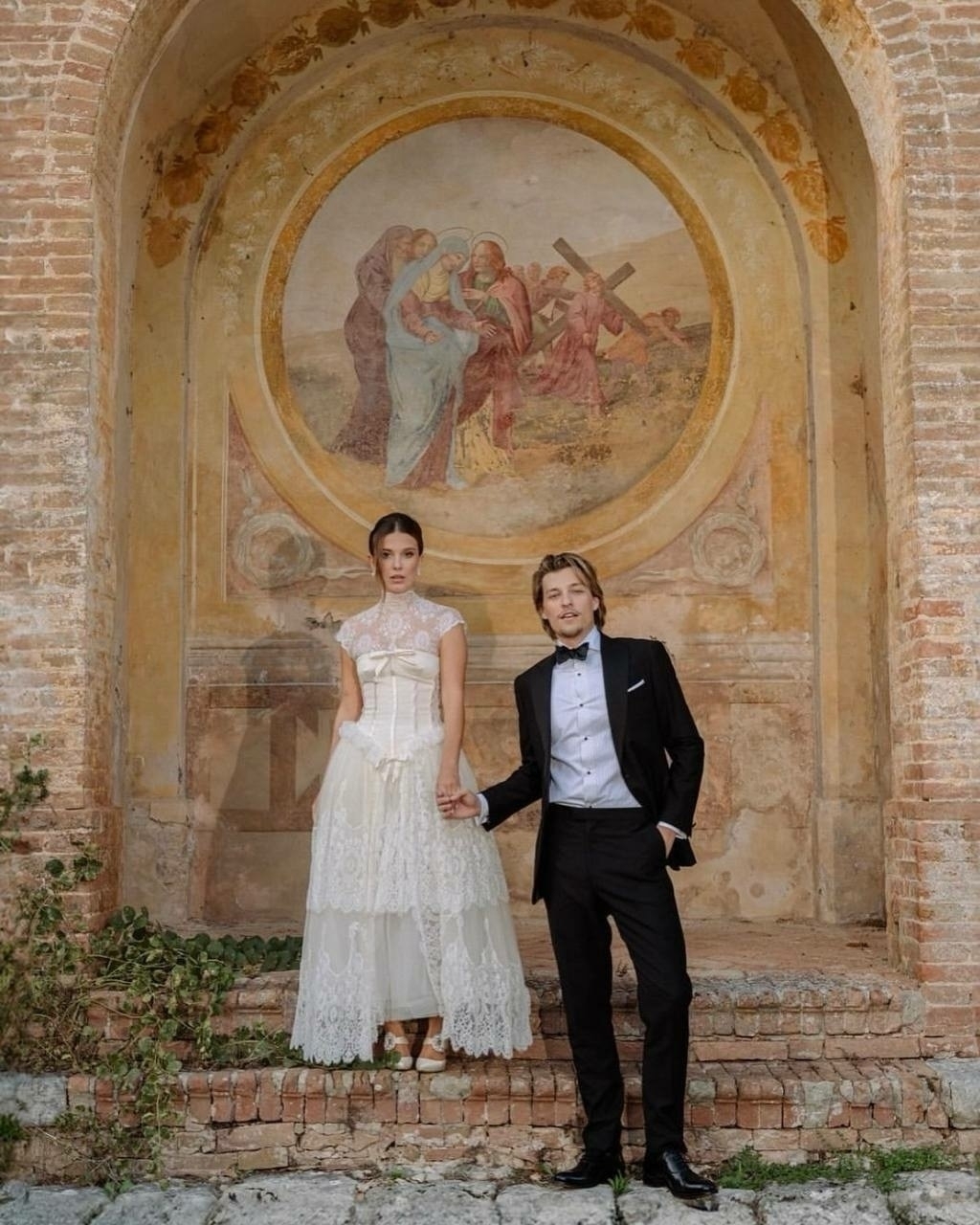 Поженились Милли и Джейк в мае 2024 года. Свадьба прошла в Тоскане, на вилле Четинале, где в июле состоялась церемония у дочери Оксаны Рим Варвары Протасовой. Актриса надела кружевное корсетное платье в пол от израильского бренда Galia Lahav, а затем сменила наряд на Valentino, Oscar de la Renta и Vivienne Westwood. В качестве десерта на торжестве был замечен ягодный торт, декор праздника был оформлен в белых тонах — пышная цветочная арка, в тон которой отвечал даже смокинг жениха от Banana Republic.