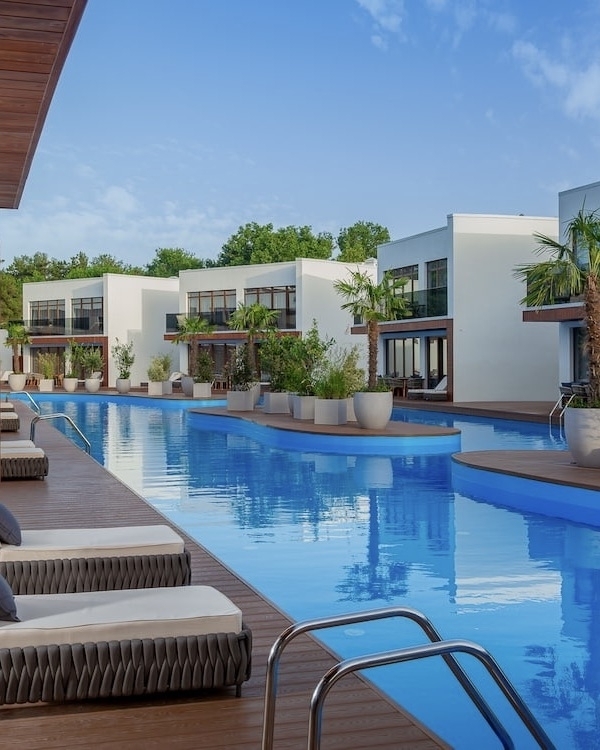 На огромной территории в 64 гектара разместились самый большой в Европе «Японский сад», рестораны разных кухонь мира, бары, ночной клуб Foster, пятизвездочный отель, 37 вилл и даже медицинский центр. В доступе гостей также новейший спа-центр и собственный пляж с водными аттракционами. Сюда стоит ехать еще и за архитектурными шедеврами в виде парящего моста и фруктового сада, которые вряд ли оставят равнодушными.