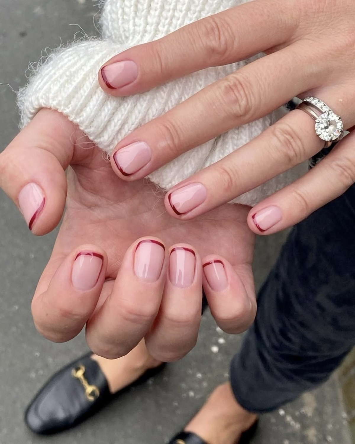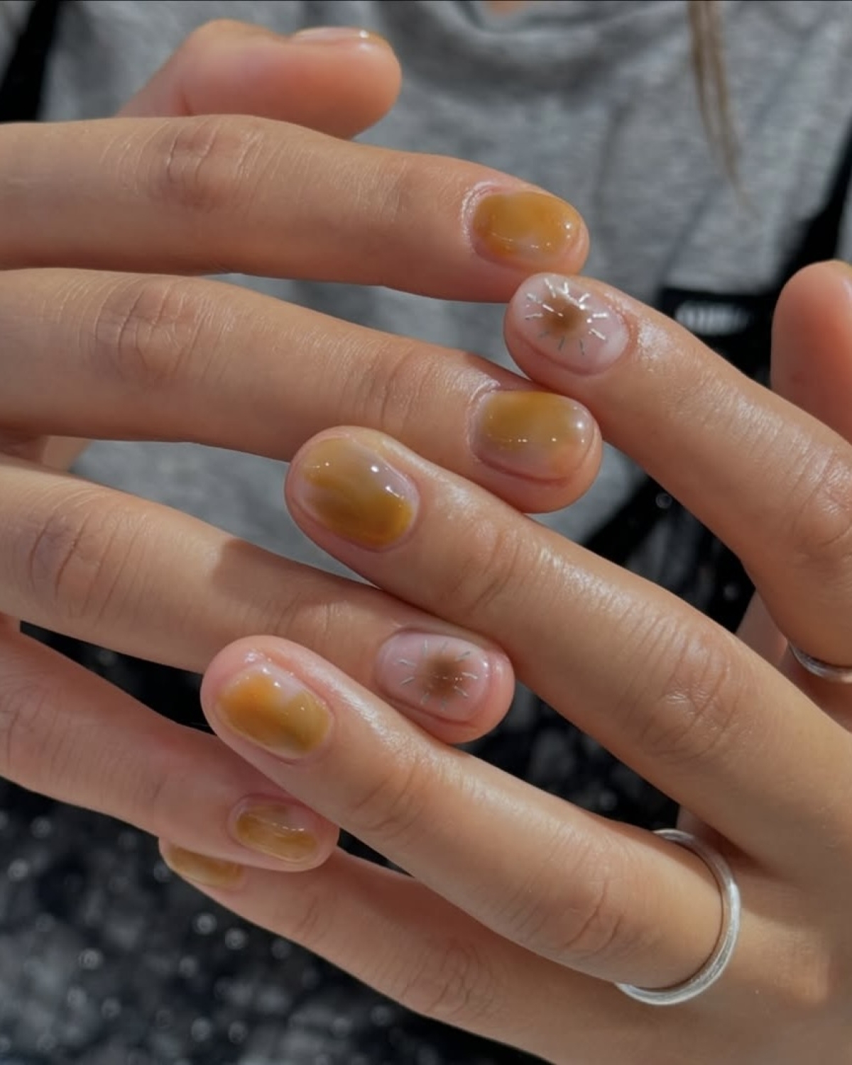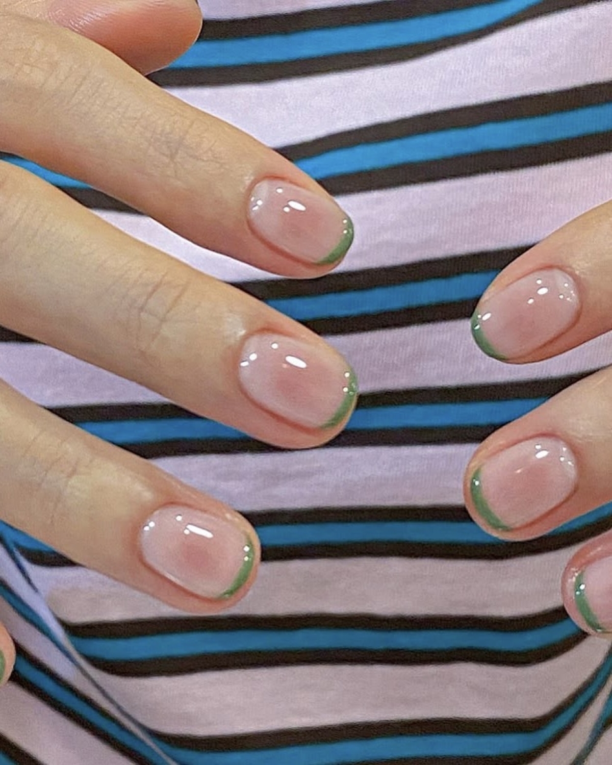 Skinny Aura (аура) про мягкий градиент, похожий на румянец. Его главное отличие от привычного ви́дения этого дизайна — более интенсивный цвет в центре и расплывчатый полупрозрачный по краям ногтя. А в продолжении тренда на естественность используйте пастельные оттенки: персиковый, нежно-розовый, лавандовый.