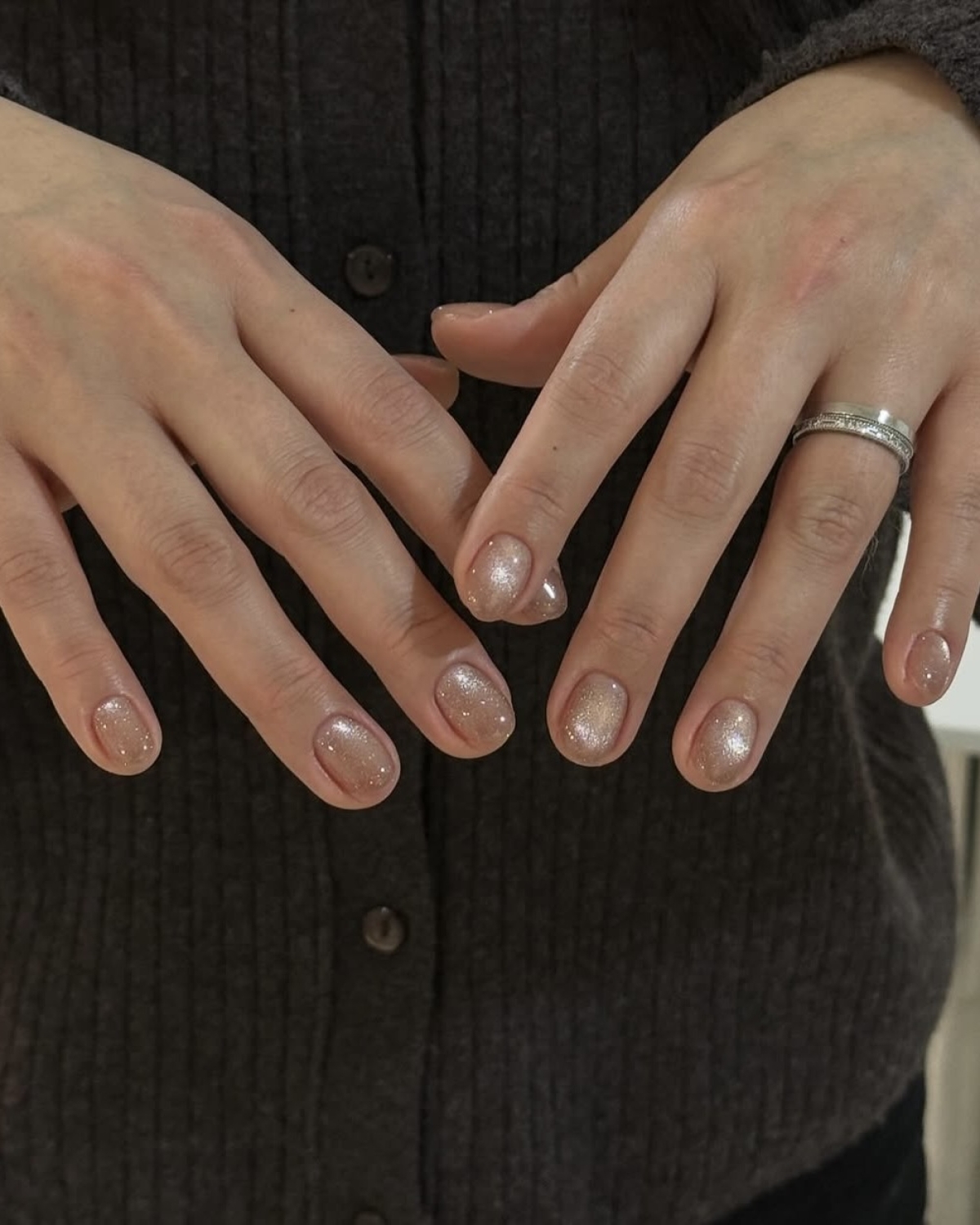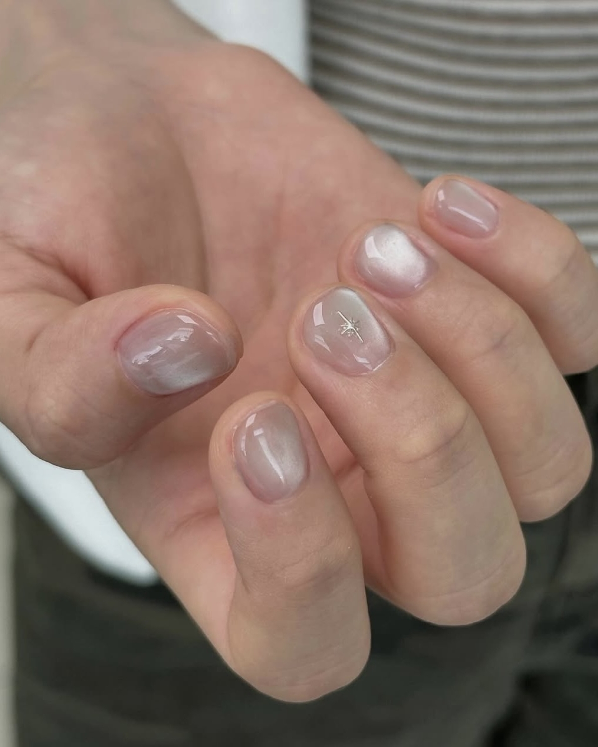 Lipgloss Nails (эффект блеска для губ) — это блестящее покрытие с легким шиммером, как у блесков Dior. Тут важно, чтобы мерцание оставалось деликатным, поэтому полупрозрачные основы и редкие вкрапления блесток — необходимое условие для такого маникюра.