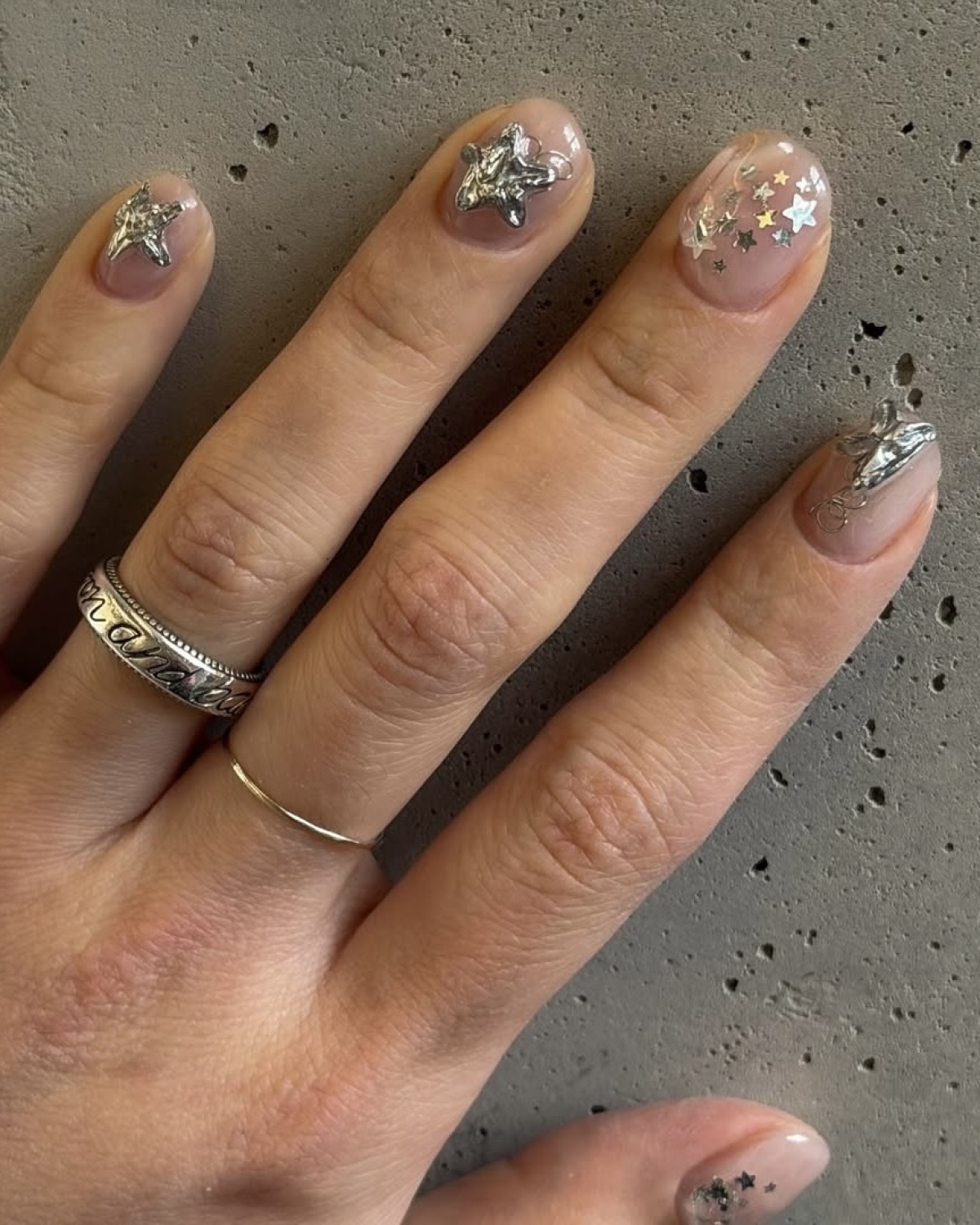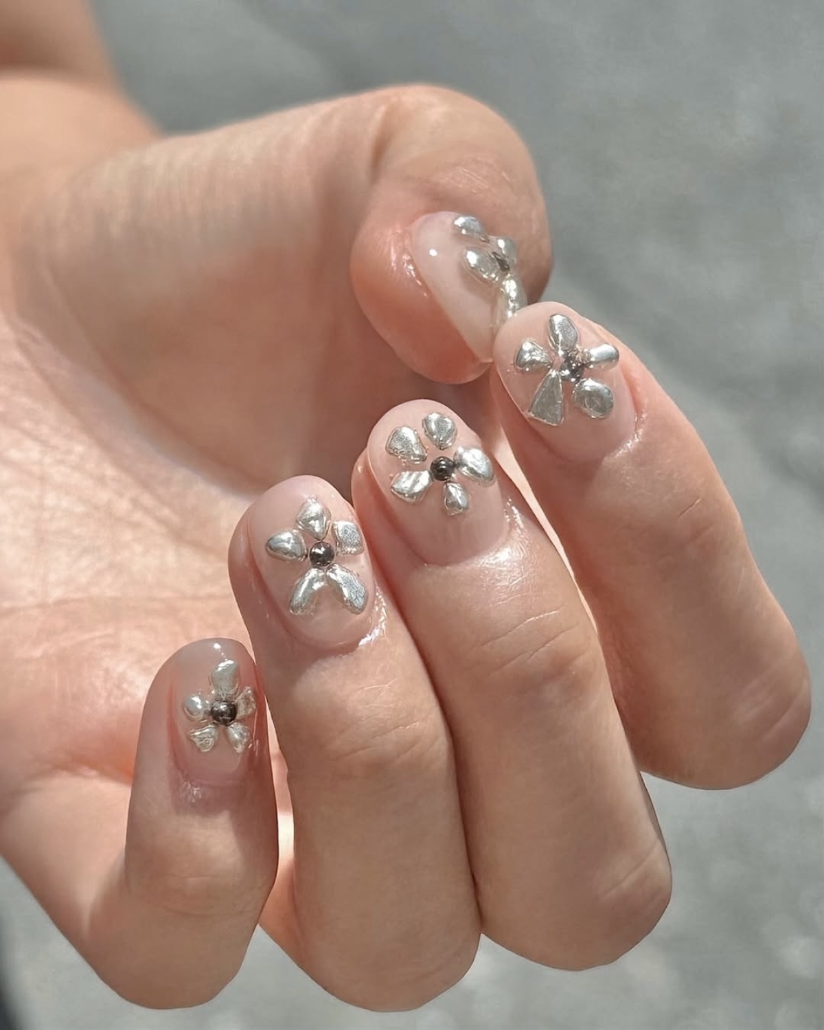 Liquid Chrome (жидкий металл) — дизайн с элементами, напоминающими растекшееся серебро или золото. В 2026 это не втирка на весь ноготь, а легкие абстрактные рисунки, объемные капли или линии.