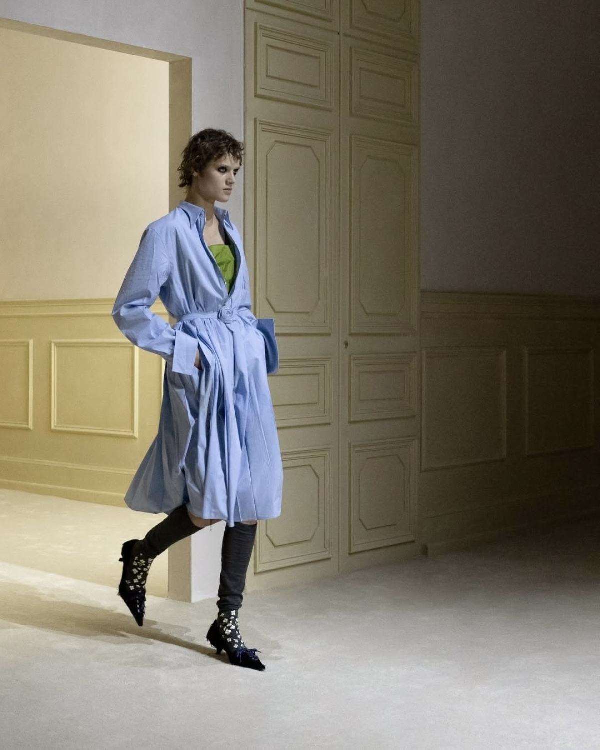 На очереди еще один тренд, который будет одинаково актуален и для женихов, и для невест. Jil Sander показали, что пиджаки и жакеты могут выглядеть иначе и вместо укороченных моделей предложили носить их удлиненные приталенные версии. К слову, в стилизации бренда такие совсем не нуждаются в дополнительных аксессуарах, что сильно упрощает свадебные сборы.