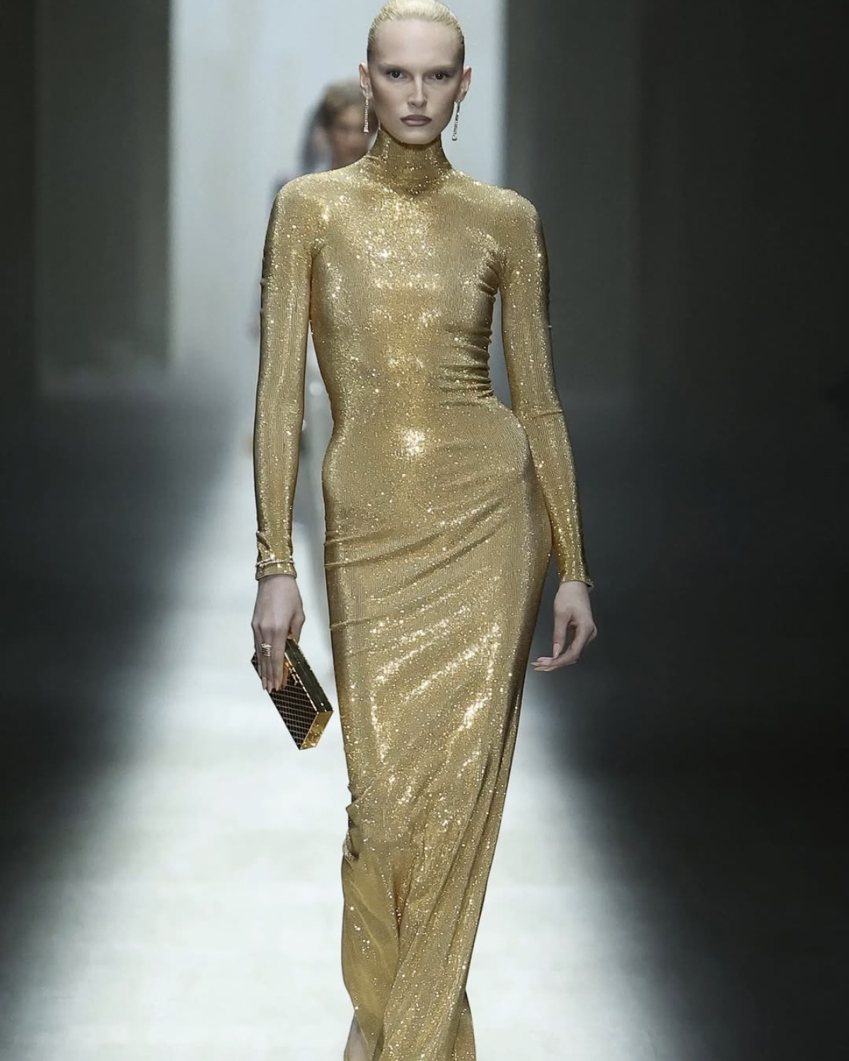 Всю неделю все только и говорят о дебюте Демны Гвасалии для Gucci. Новая коллекция — актуальный микс андеграунда и вечерней классики, а это довольно органично вписывается в свадебный дресс-код. Тут и обтягивающие силуэты, и мерцающие ткани, и кружево, но преимущественно в холодной темной палитре с вкраплениями золота и серебра.