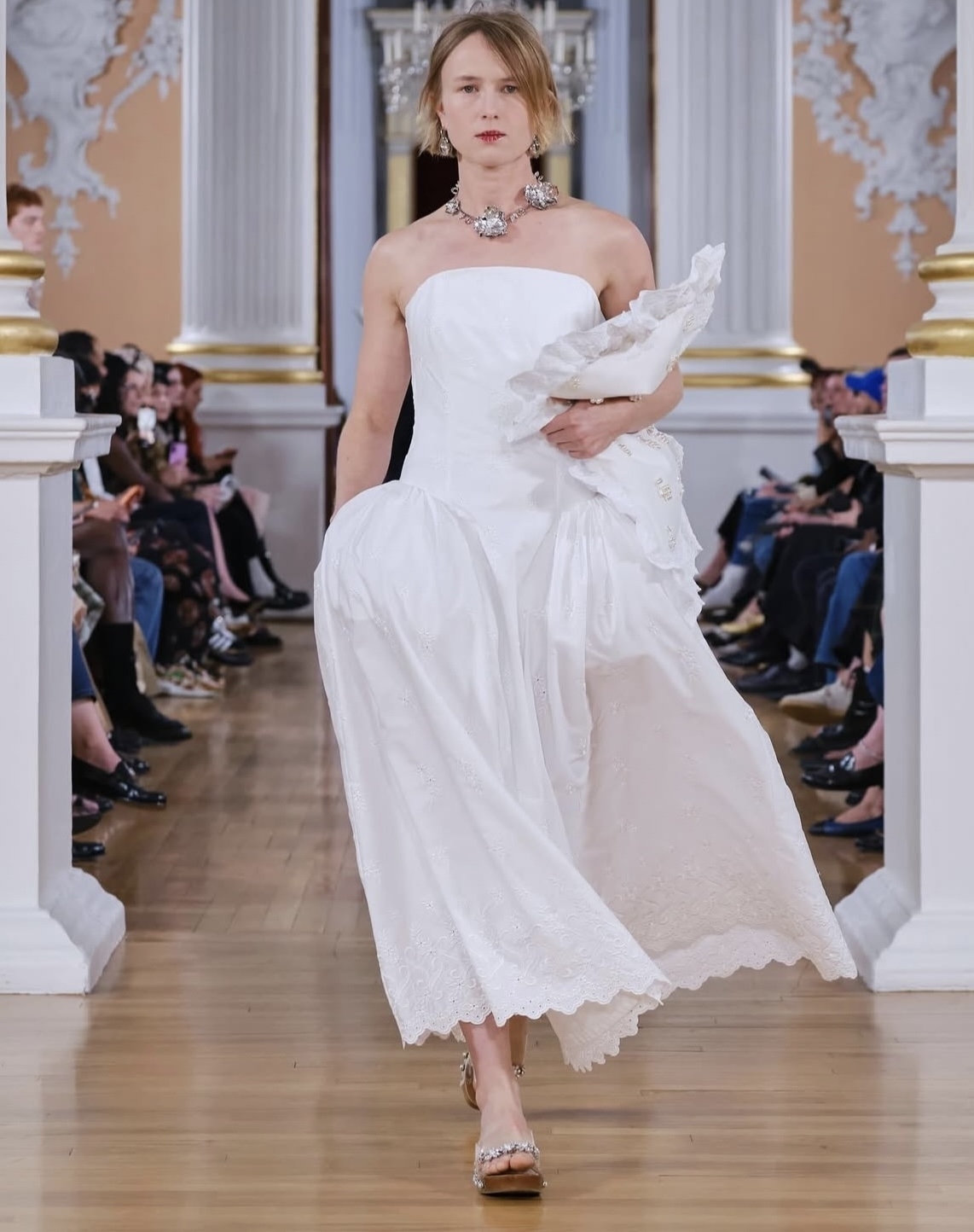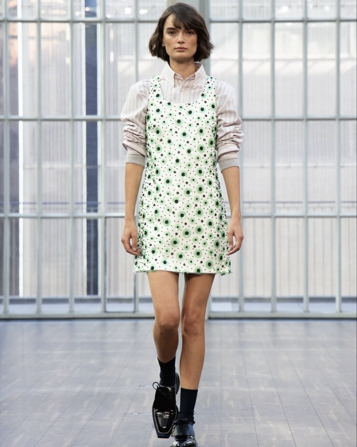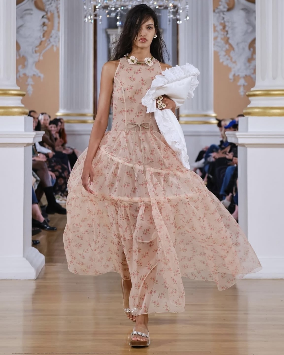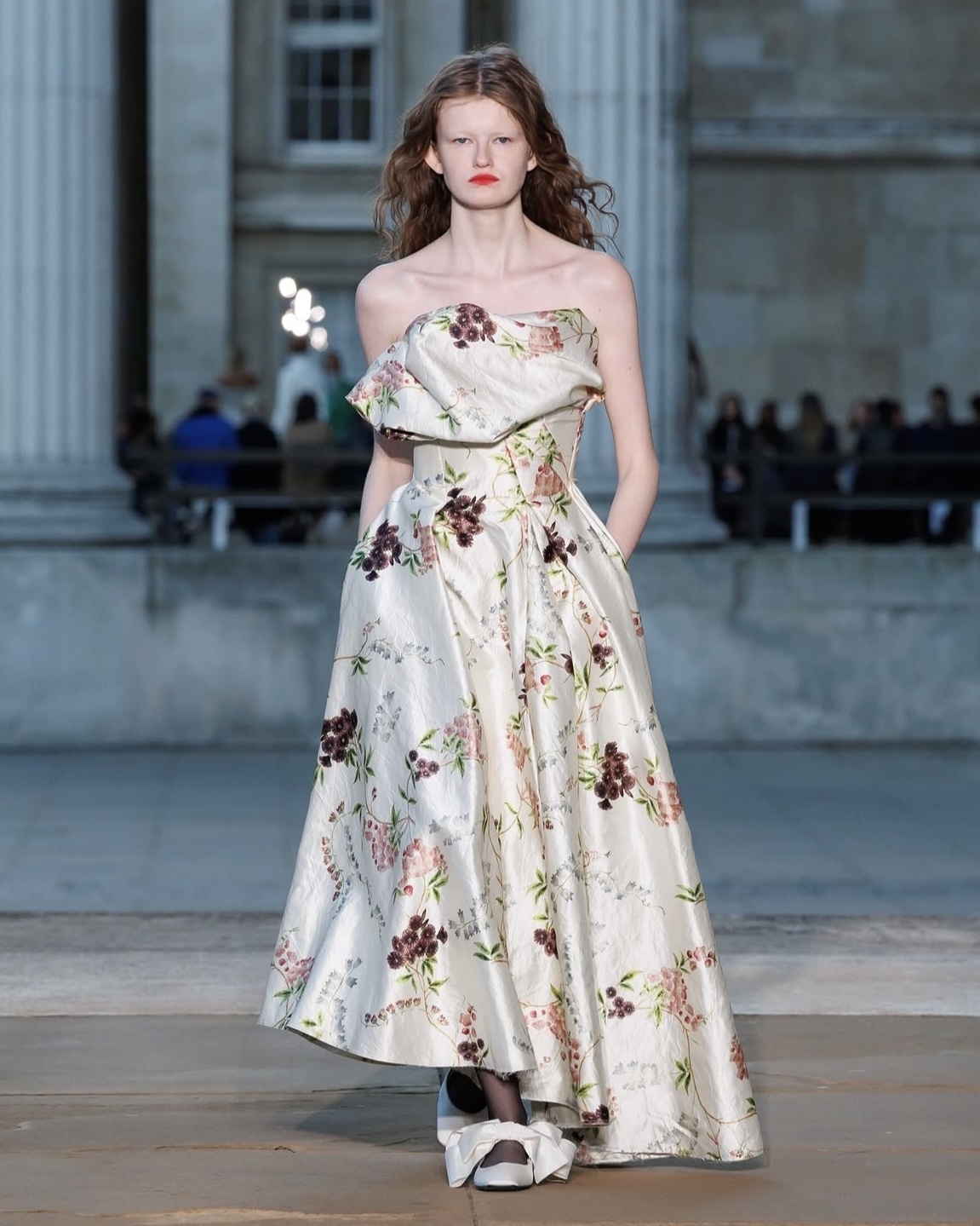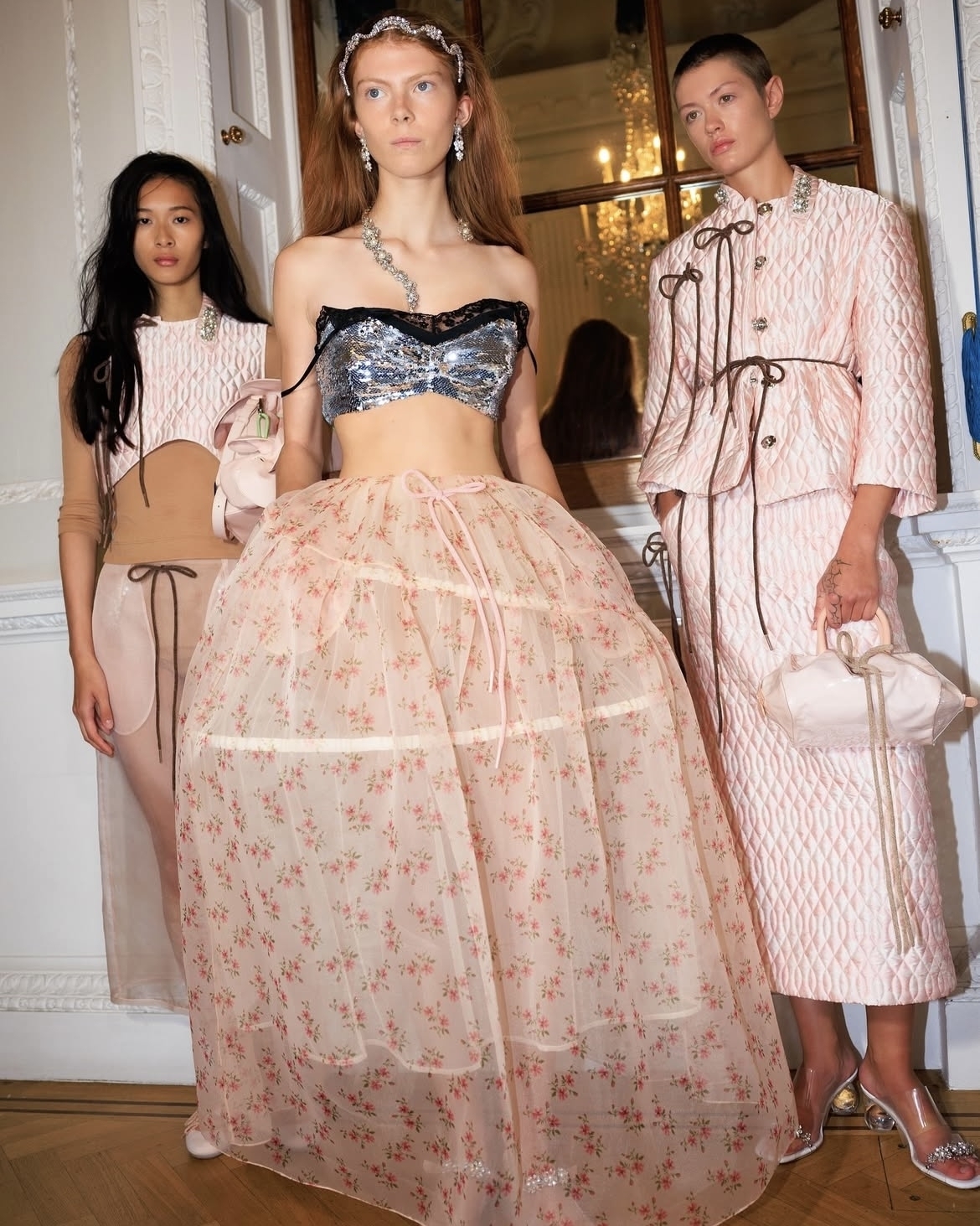 Объемные бока на юбках и платьях набирают популярность с бешеной скоростью. И если в прошлом сезоне модная деталь была фишкой всего нескольких дизайнеров, то на этой Неделе моды в Лондоне в коллекциях весна–лето 2026 идею адаптировал практически каждый второй. Главным амбассадором тренда на объемные бока заслуженно стал бренд Simone Rocha. Дизайнер предложила вечерние интерпретации юбок и платьев с кринолинами из полупрозрачного фатина, с крупными цветами в отделке и с пайетками-гигантами, застилизовав их с микро-топами и нарядными балетками. Тренд поддержали и модельеры Эмма Чопова и Лаура Ловена (Chopova Lowena). Они также обыграли объемные бока в платьях, добавив присущую эклектику и акцент на текстуру. К слову, надеть образы с кринолином можно не только на свадьбу, но и просто на прогулку по городу: достаточно упростить образ минималистичной футболкой и кедами.