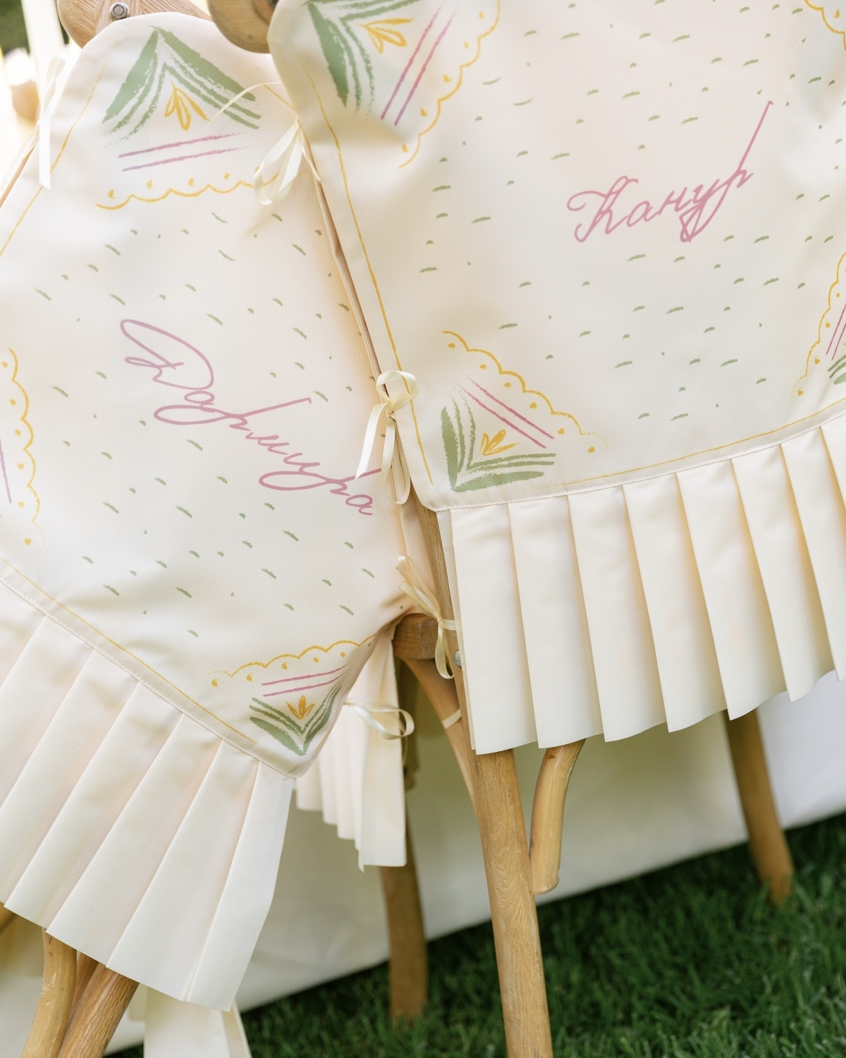 А еще — чехлы на стулья с именами гостей, которые можно было забрать с собой как сувенир.