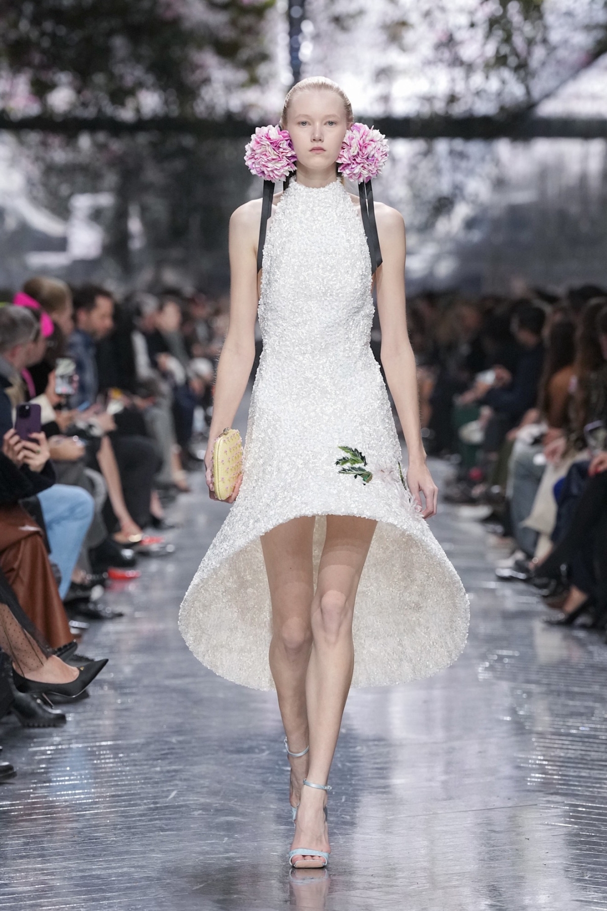 Самый трудолюбивый дизайнер Джонатан Андресон показал первую haute couture коллекцию на посту креативного директора Dior — не оставив шансов в нее не влюбиться. Под музыку Вивальди цветы расцвели на потолке Музея Родена, у моделей вместо сережек (апдейт: это были настоящие букетики, перевязанные лентой), наслоились лепестками в отделке юбок, показались в дизайне туфель и силуэте аксессуаров. Внимательные поклонники сразу вспомнили эру Гальяно и Рафа Симонса, часто распускавших на платьях бутоны, и, разумеется, самого Кристиана Диора, для которого тема сада была важнейшей в жизни и творчестве.