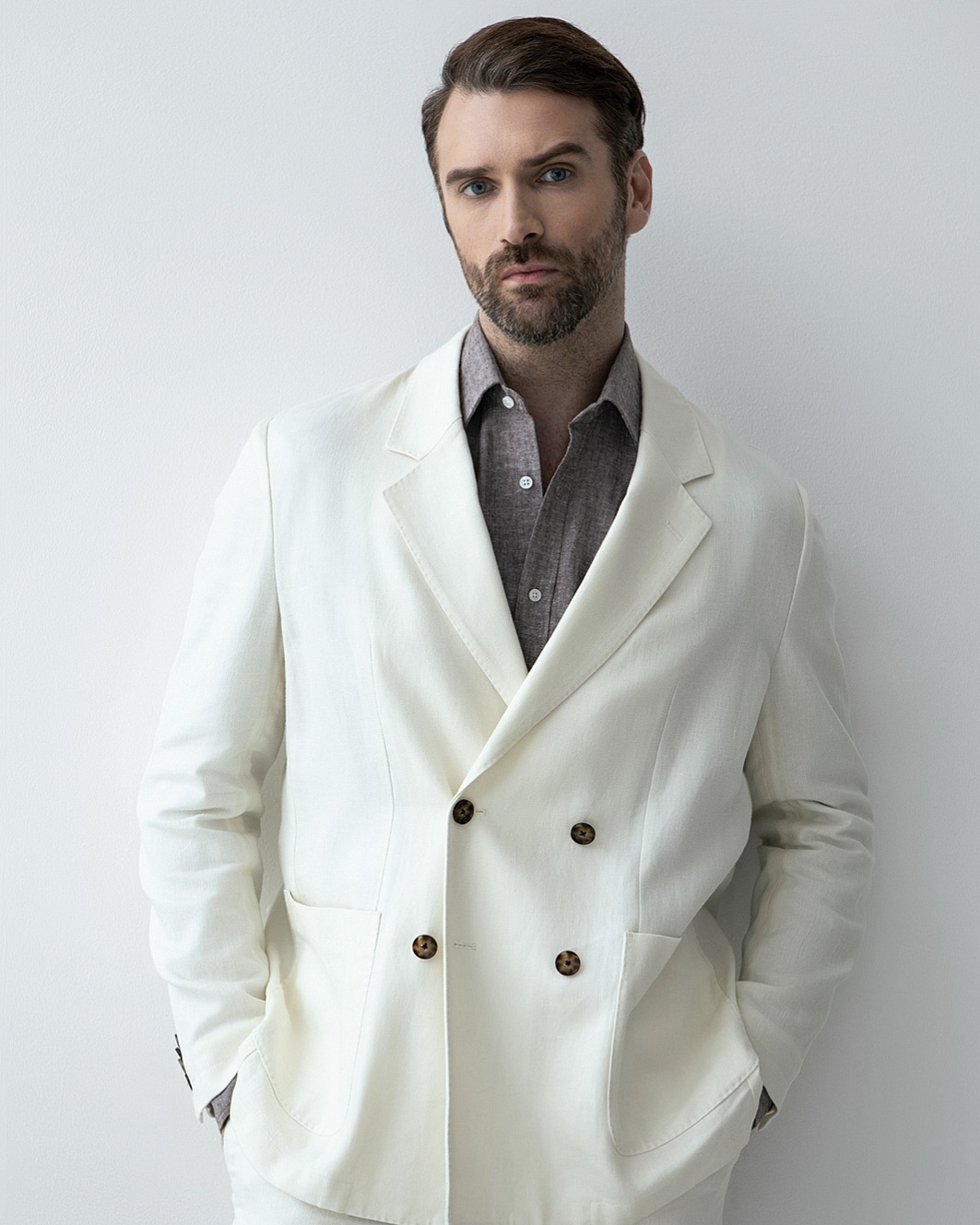Церемония на свежем воздухе, жара, эмоции — и вы в костюме изо льна и тенсела от KANZLER. Натуральная ткань с благородной фактурой делает его легким и дышащим, сохраняя прохладу в самый солнечный день. А свободный крой не ограничивает движения и выглядит элегантно.