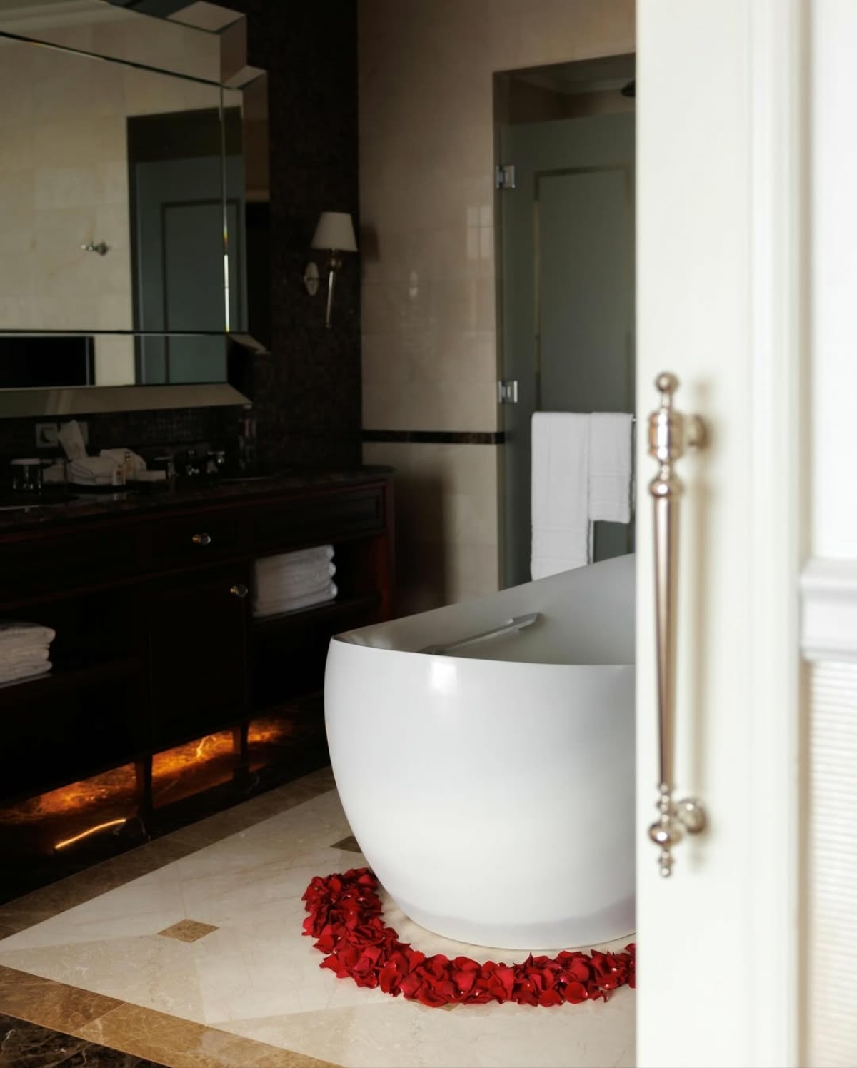 Добавить празднику романтики можно, проведя праздничный уик-энд в Lotte Hotel Moscow. Красивые выходные в отеле обещают влюбленным гостям много приятных бонусов, среди которых приветственная бутылка игристого, завтрак в номере или посещение ресторана OVO, праздничный декор ванны, скидка 10% в рестораны отеля, доступ в бассейн, фитнес-центр и термальный комплекс Mandara Spa и не только. Тем, кто захочет остаться в Lotte Hotel Moscow, предложат поздний выезд до 18:00 и бесплатный паркинг на территории отеля.