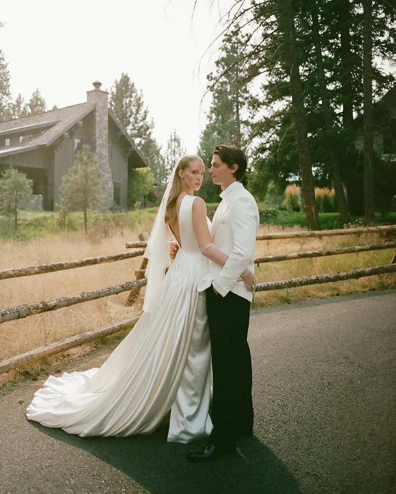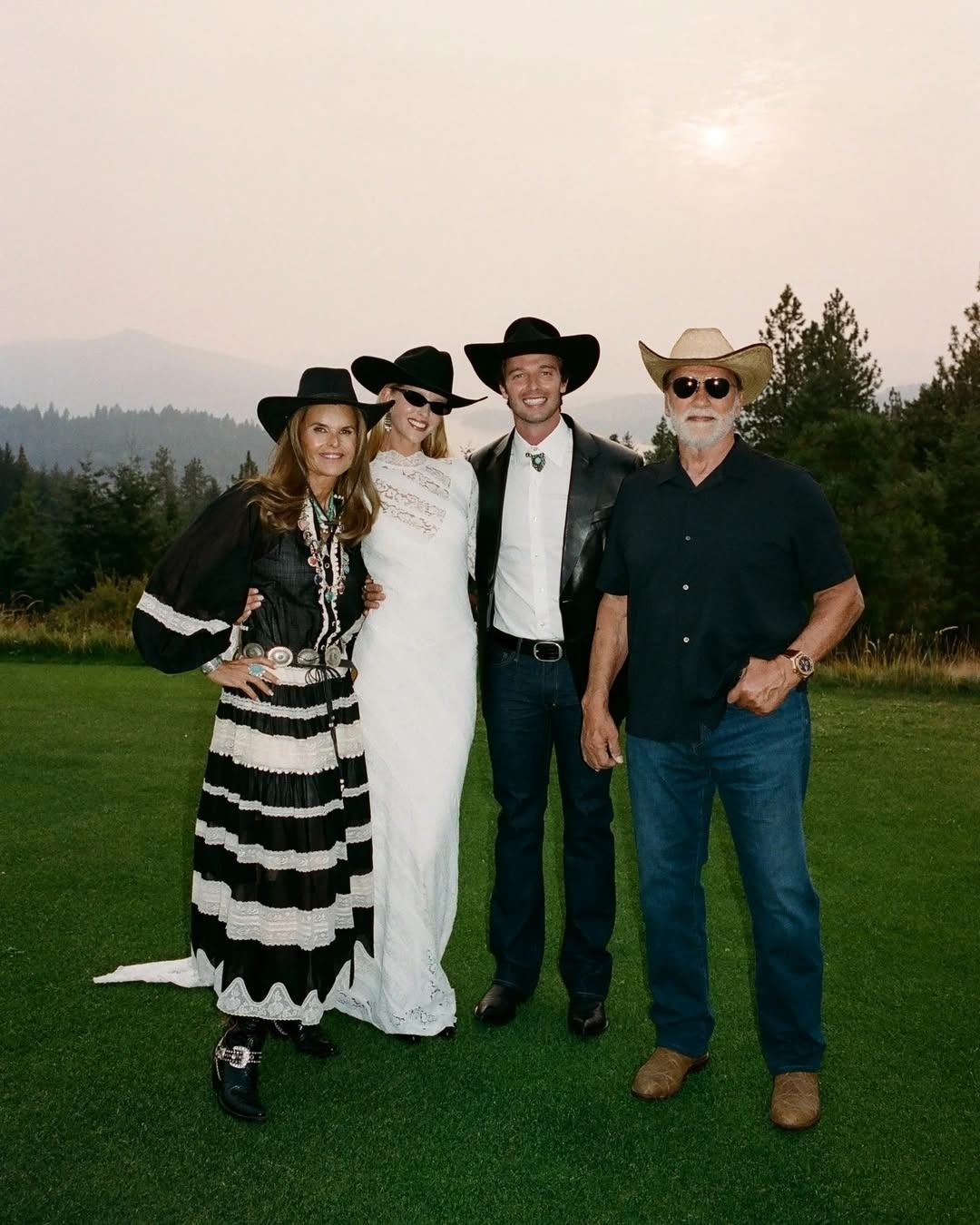 Звезда «Белого лотоса» и по совместительству сын Арнольда Шварценеггера Патрик женился на модели Эбби Чемпион после десяти лет отношений. Свадьба прошла в загородном клубе Айдахо на берегу озера Кер-д'Ален и длилась три дня. Для репетиционного ужина 4 сентября Эбби выбрала расшитое лепестками платье Zimmerman, Патрик — небесный костюм Tom Ford. На следующий день пара провела вестерн-препати на ранчо, а на последний день оставила самое важное — церемонию. К алтарю Эбби шла в элегантном платье Danielle Frankel с глубоким вырезом на спине, которое было сшито специально на заказ. На Патрике — снова Tom Ford авторства Хайдера Акермана. В конце вечера невеста сменила платье на образ от того же дизайнера.