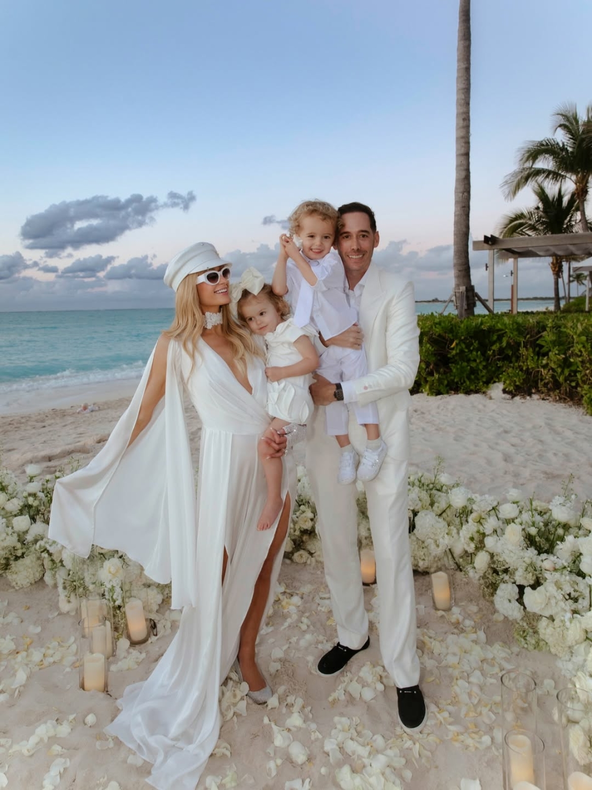 Пэрис Хилтон и ее муж Картер Реум обновили клятвы и снова сказали друг другу «Да» в День всех влюбленных. Камерная церемония прошла в окружении детей — трехлетних сына Феникса Бэррона и дочери Лондон Мэрилин (они появились у пары благодаря суррогатным матерям) — на карибском островах Теркс и Кайкос.