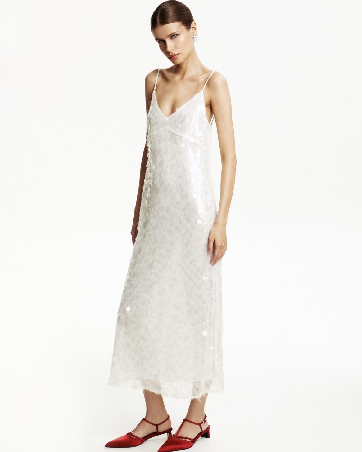 В крупных пайетках Rabanne на Венецианском кинофестивале появилась новоиспеченная мама и инди-поп-дива Сьюки Уотерхаус. На недавней нью-йорской Неделе моды Altuzarra показали расшитое большими блесками пальто, а инфлюенсеры стали все чаще блистать в пайеточных образах в ленте запрещенной сети. Решили не отставать от тренда, который призывает сиять вопреки наступившей осени. Так и собрали идеальную вечериночную подборку из заметных платьев с большими пайетками — ниже.