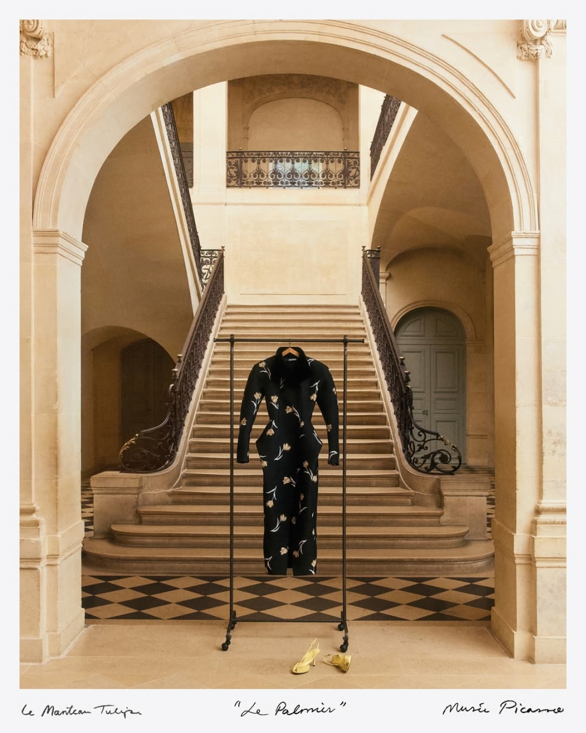 Открывал шоу Le Palmier образ с платьем на одной бретели и бокалом у груди — оммаж Паломе Пикассо в объективе Хельмута Ньютона. Был ироничный образ, на создание которого Жакмюса побудил портрет Пьеро самого Пабло. Часть аллюзий пришлась на другие предметы искусства: яркие точки с полотен Дэмьена Херста ожили в аппликациях на веселой рубашке, а архитектура скульптур Константина Брынкуши стала основой для точеного женского костюма.