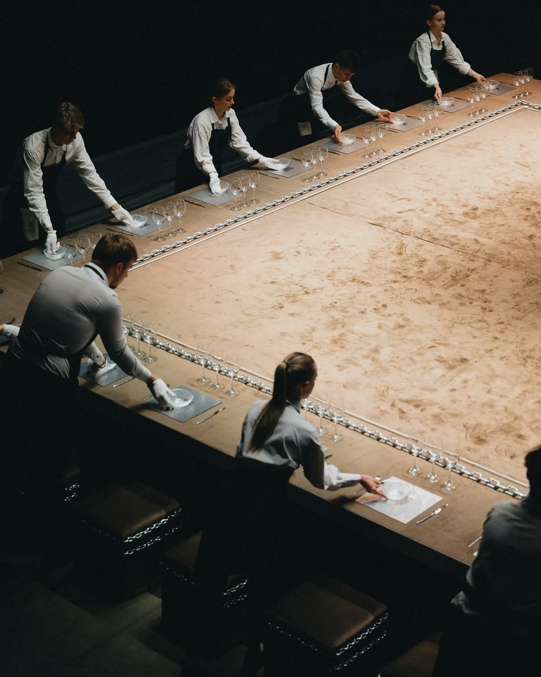 Кольцевидная рассадка — фаворит камерных свадеб. Все видят друг друга, никто не выпадает из общей энергии. Это действительно работает на сближение и создает ощущение общей компании, особенно если гостей немного.