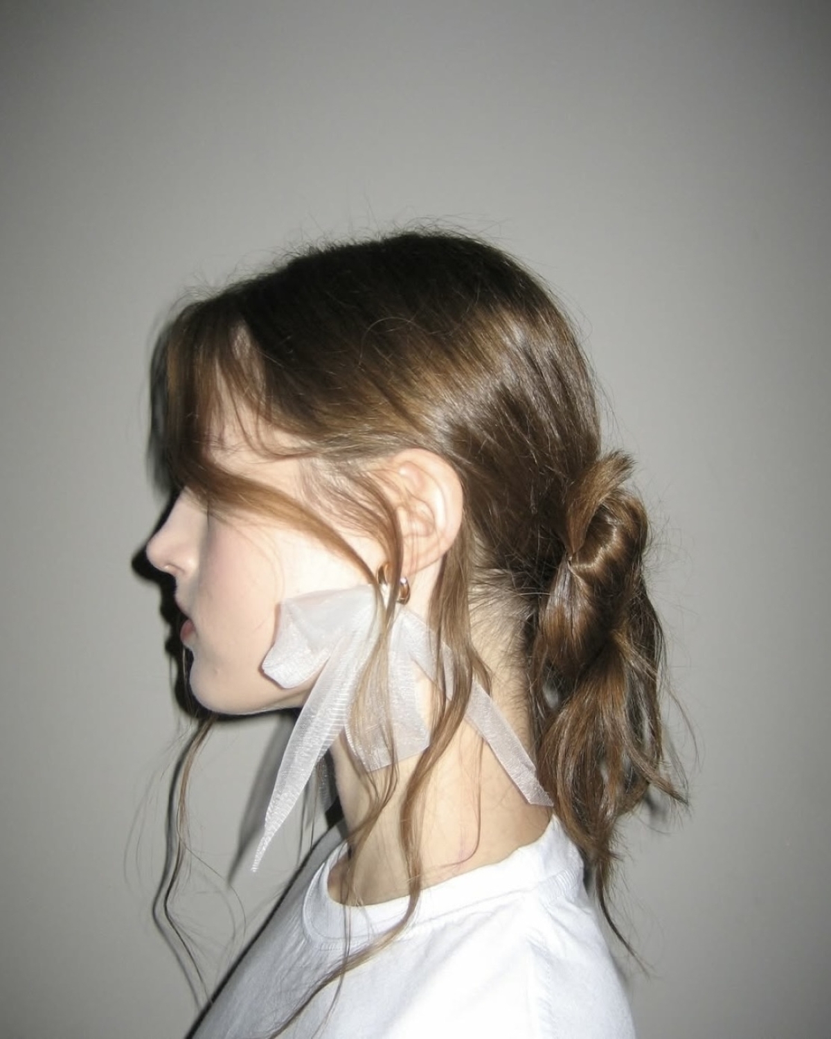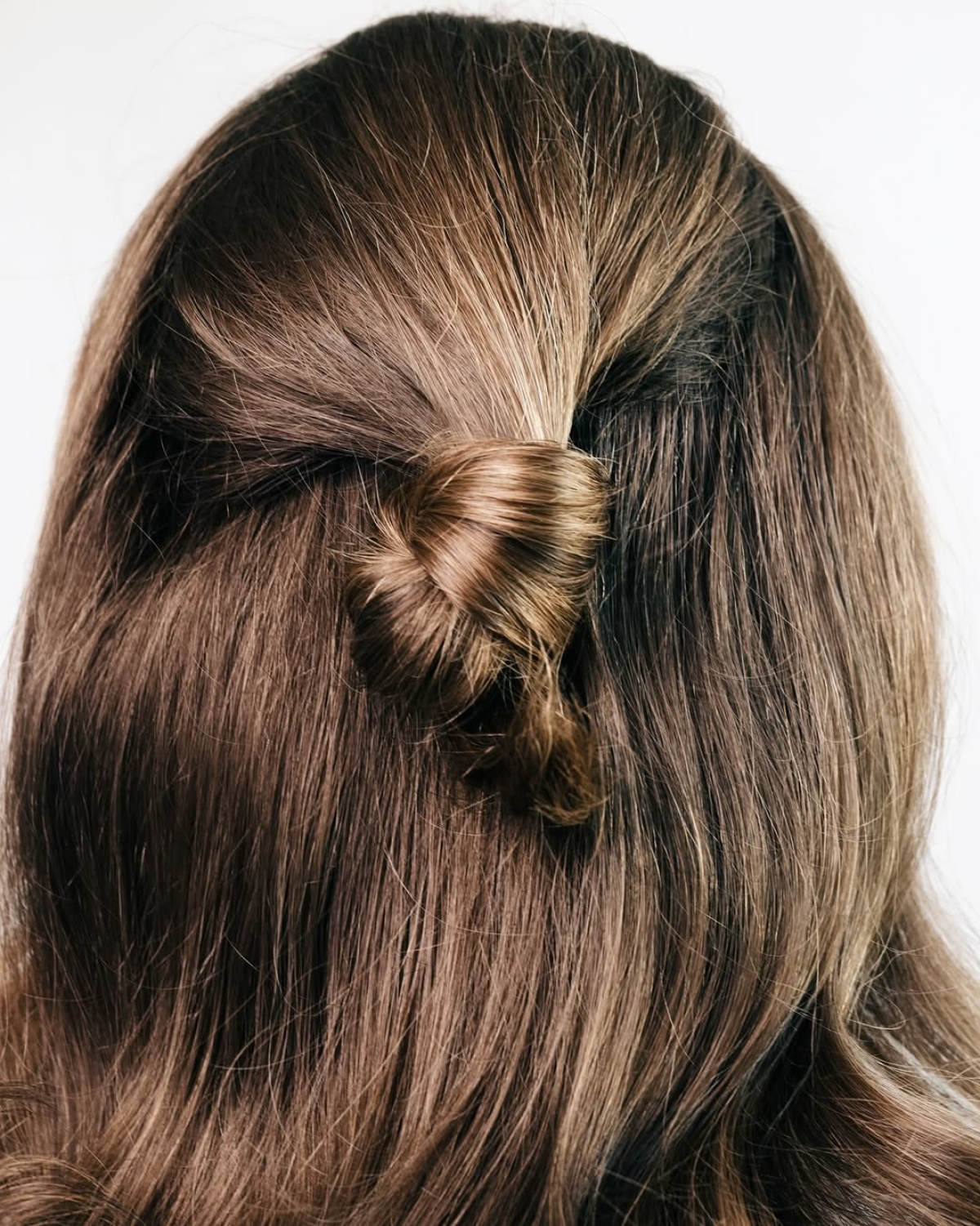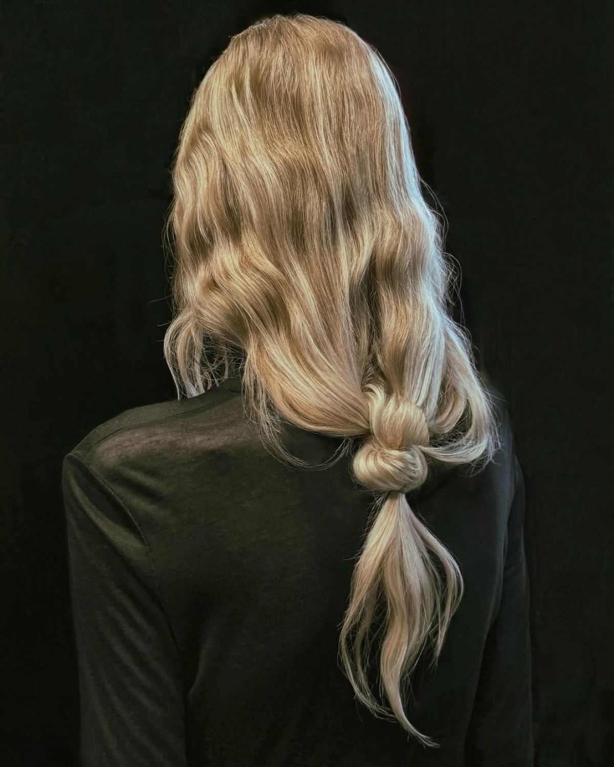 Подтип небрежной укладки для обладательниц длинных волос — завязанные узлом пряди, которые вот-вот развяжутся. Чтобы прическа только создавала такой эффект и не разваливалась в действительности, используйте текстурайзеры, которые сделают локоны более шероховатыми.