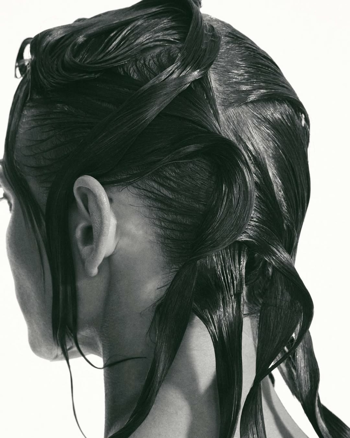 Прическу с боковым пробором несложно повторить в домашних условиях. Вначале моем голову и сушим ее, вытягивая пряди вниз. Для уверенности после можно пройтись утюжком, чтобы добиться более гладкой структуры. Затем нужно перекинуть часть волос на пробор и при желании нанести фиксирующий гель сверху. Хотя парикмахеры бренда Enfants Riches Déprimés решили оставить естественную текстуру — так тоже можно.