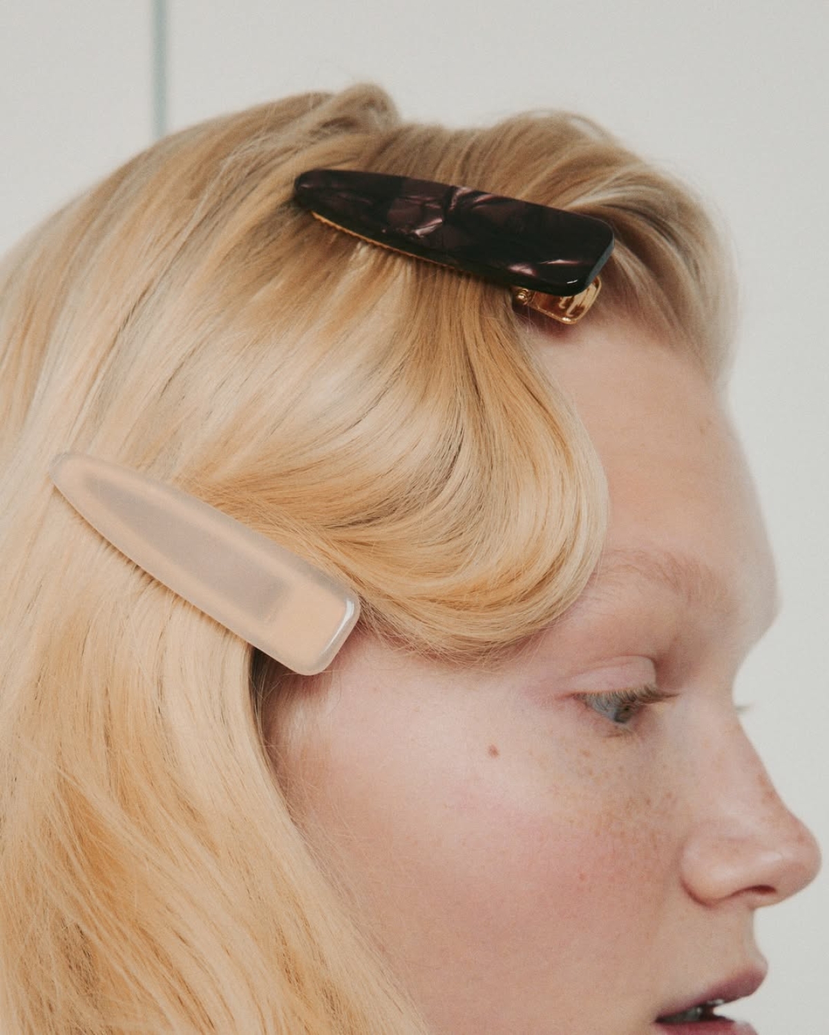 Аксессуары для волос переживают вторую молодость после показа The Row весна–лето 2026. Тогда парикмахер Гвидо Палау подобрал локоны моделей несколькими винтажными гребнями и породил огромную волну последователей, которые записали не один туториал на тему (для желающих повторить прическу видео — в свободном доступе). Можно освоить ее облегченные вариации: сделать небрежный пучок, как инфлюенсер Саша Буримова, которая использовала сразу несколько крабиков и шпильку, или зафиксировать холодную волну защипами.