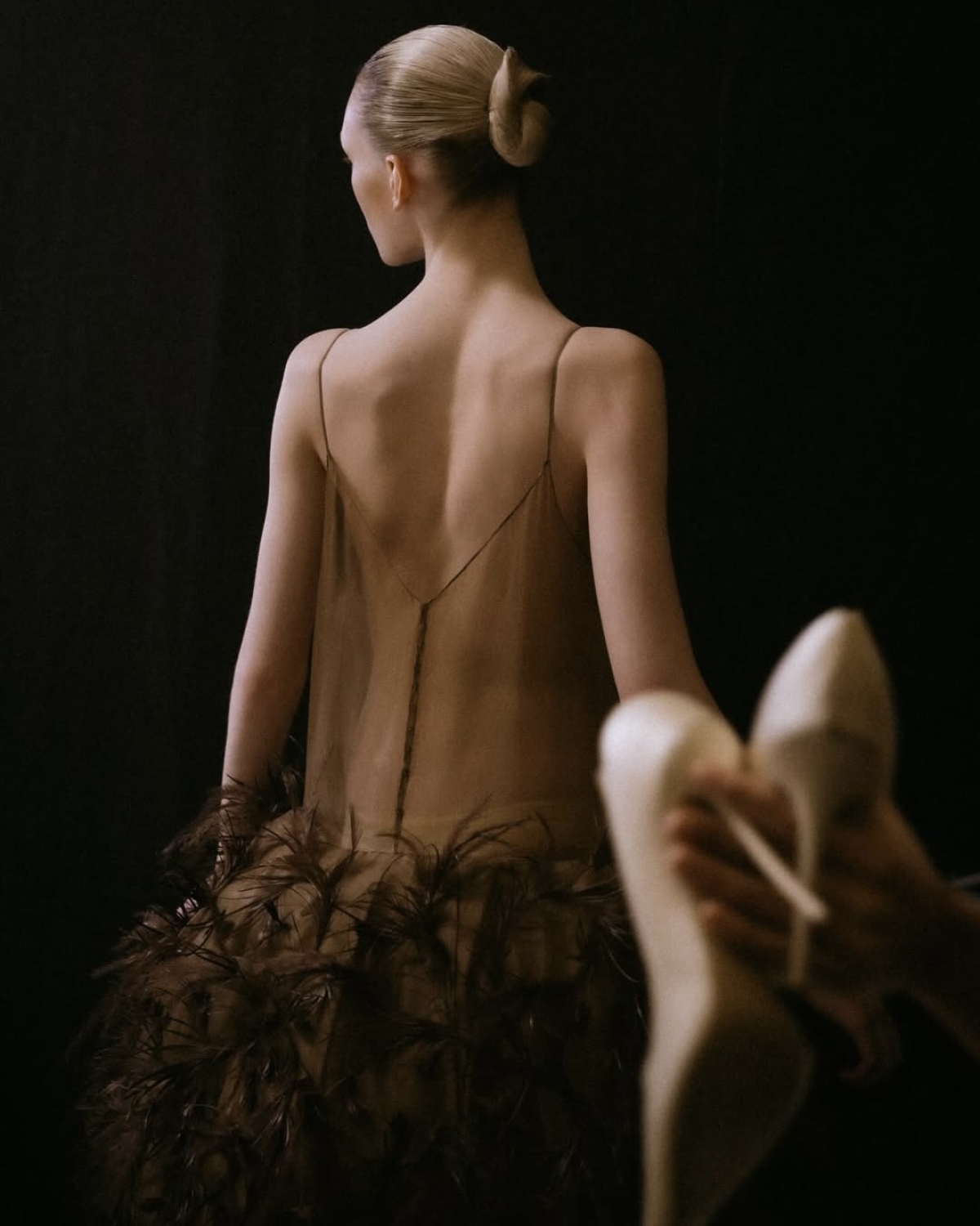 Какой бы ни была укладка, Robert Wun и Valentino решили спрятать ее под головным убором. Если Алессандро Микеле показал аксессуары с перьями, которые мы видели на дивах золотого века Голливуда, Вун придумал просто фантастически красивые белые шляпы. В общем, сделал так, чтобы современная невеста не нуждалась в референсах для образа без фаты.