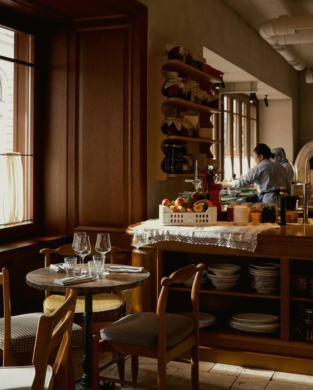 Jinju Bistro находится в самом сердце модных «Садовых кварталов» на Усачева. Но при этом отлично скрыто от толп тех, кто приходит в эту локацию за фотографиями. Бистро в европейском стиле подойдет тем, кто любит места, где акцент делается на блюдах (и вине). Чтобы насладиться не только друг другом, но и мини-перформансом от поваров, выбирайте столик рядом с окошком на кухню. А на ужин берите риет из лосося с пивным хлебом, карпаччо из сибаса, теплые овощи с соусом верде и френч-тост с джелато.