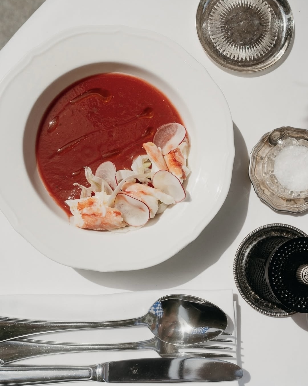 «Лолита» расположилась в исторической усадьбе на Яузской улице. Заброшенные комнаты обрели помпезный интерьер, где чувствуется любовь к каждой детали: мягкой мебели цвета охры, винному шкафу с аккуратной подсветкой, плитке, которой отделана барная стойка и кухня и не только. Шеф-повар Артем Сипугин готовит блюда на коптильне, собственноручно печет хлеб и делает брискет в закрытом гриле. Для знакомства с кухней «Лолиты» советуем взять на ужин салат с белыми грибами, креветками и дзадзики, тет-де-муан с ананасом, ризотто с гребешком и пан-о-шоколя.