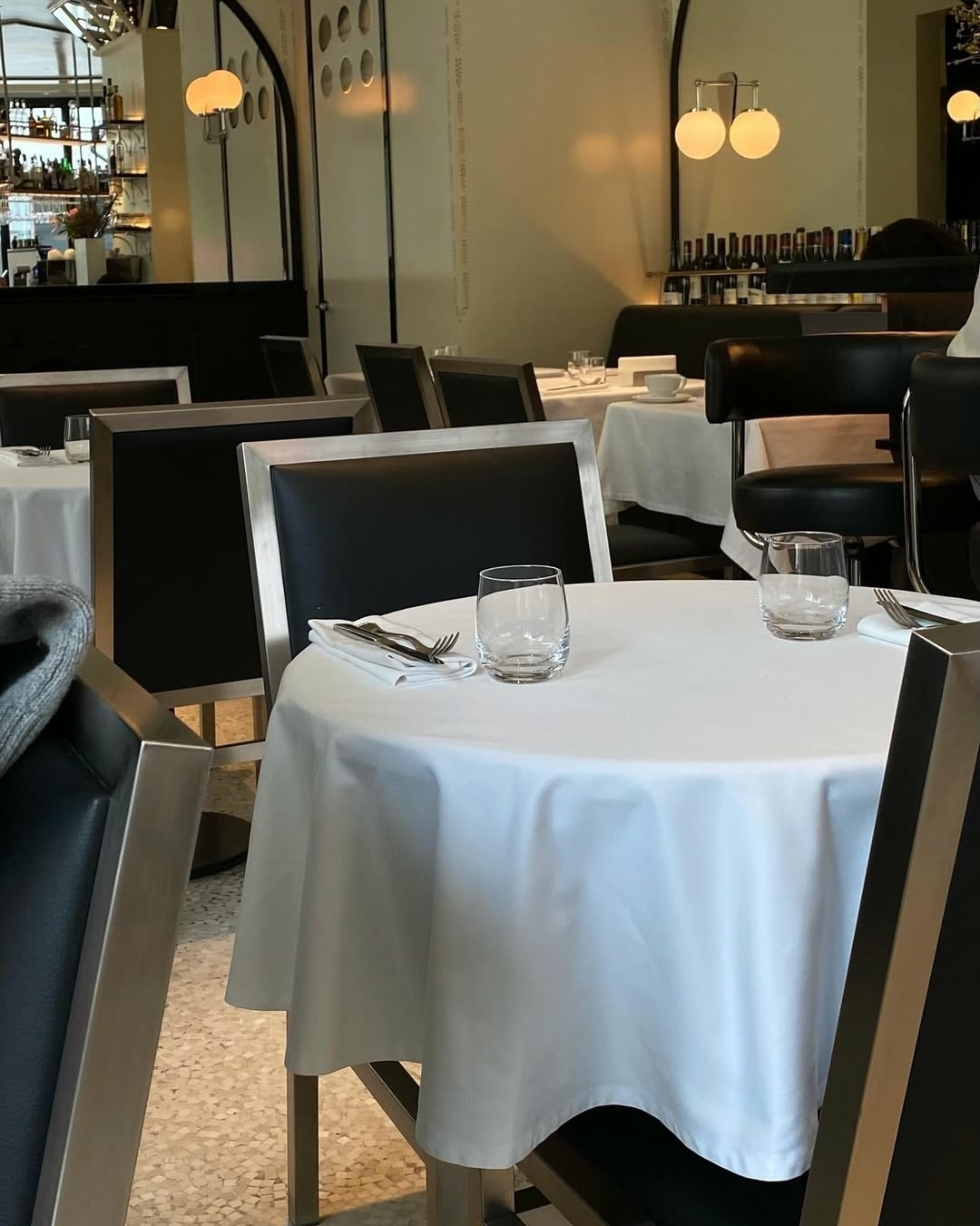 Необистро Santi в парижском стиле находится неподалеку от Патриаршего пруда — в Малом Козихинском переулке. В элегантный дизайн отлично вписываются белые скатерти, кремово-белая отделка и черная кожаная мебель с зеркалами по всему периметру. Почувствовать себя героями французского романа можно, расположившись за столиком для двоих в самом центре ресторана. Бренд-шеф Александр Штепа наполнил меню блюдами со всего мира. И хотя позиций не так много, здесь хватает всего. На пробу рекомендуем взять трюфельные крокеты, тартар из говядины с картофелем фри, черную треску или лазанью с уткой и классику французской кухни — яблочный тарт татен.