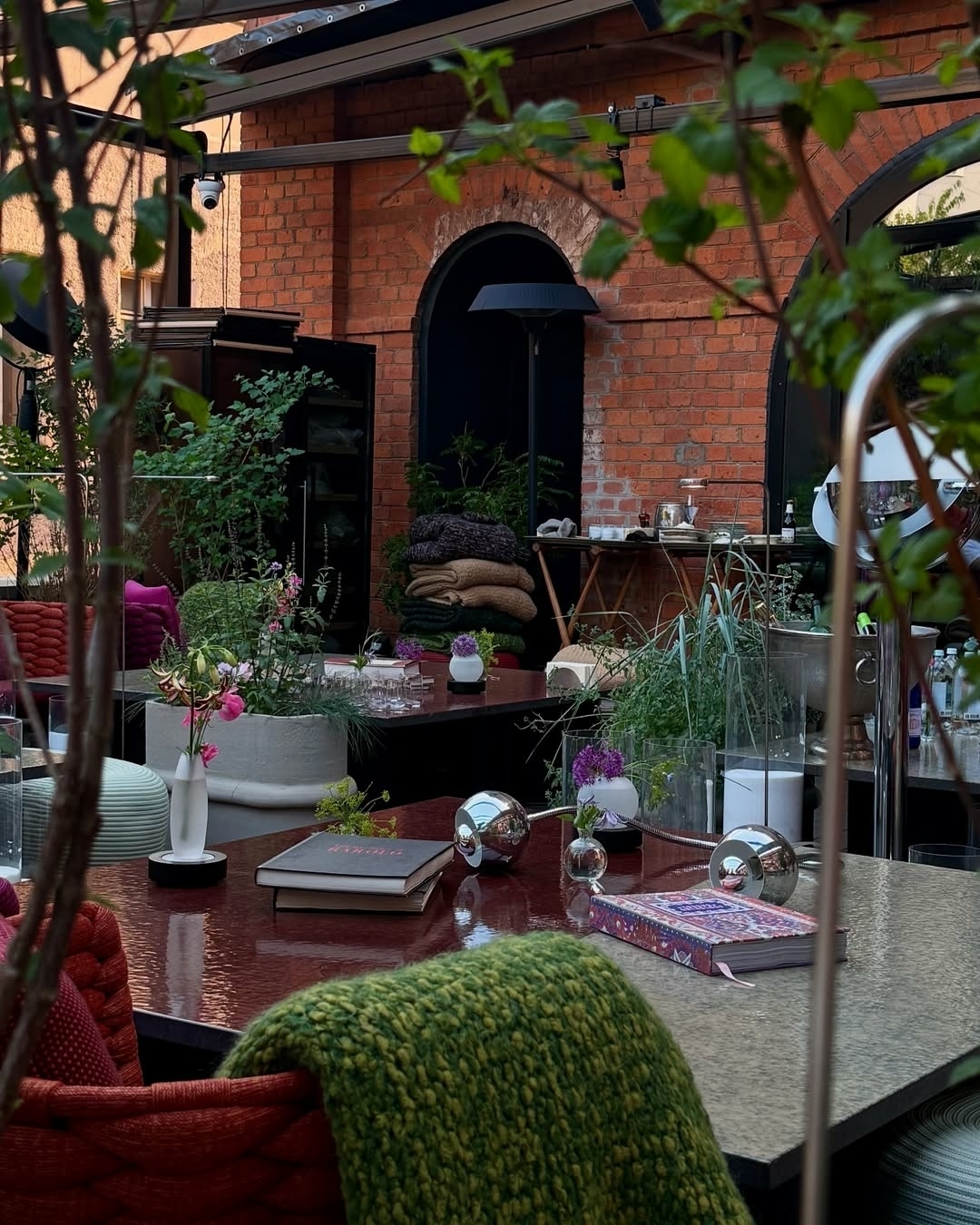 Если захочется подняться повыше и провести время наедине вдали от шумных «Патриков» и Большой Никитской улицы, отправляйтесь в ресторан «За крышей» от создателей Big Wine Freaks. Он находится в Столярном переулке и располагает не только уютным залом в пастельных оттенках с точечным светом, но и открытой верандой, где можно поужинать в теплые вечера. Шеф-повар Марат Калайджян создал меню с блюдами смешанной кухни, но с очевидным акцентом на Италию. Здесь стоит попробовать крудо из красной креветки с малиной, оладьи с икрой форели и щуки (или осетровой), равиоли с рикоттой и трюфелем и брокколини со сморчками и сыром шевр.